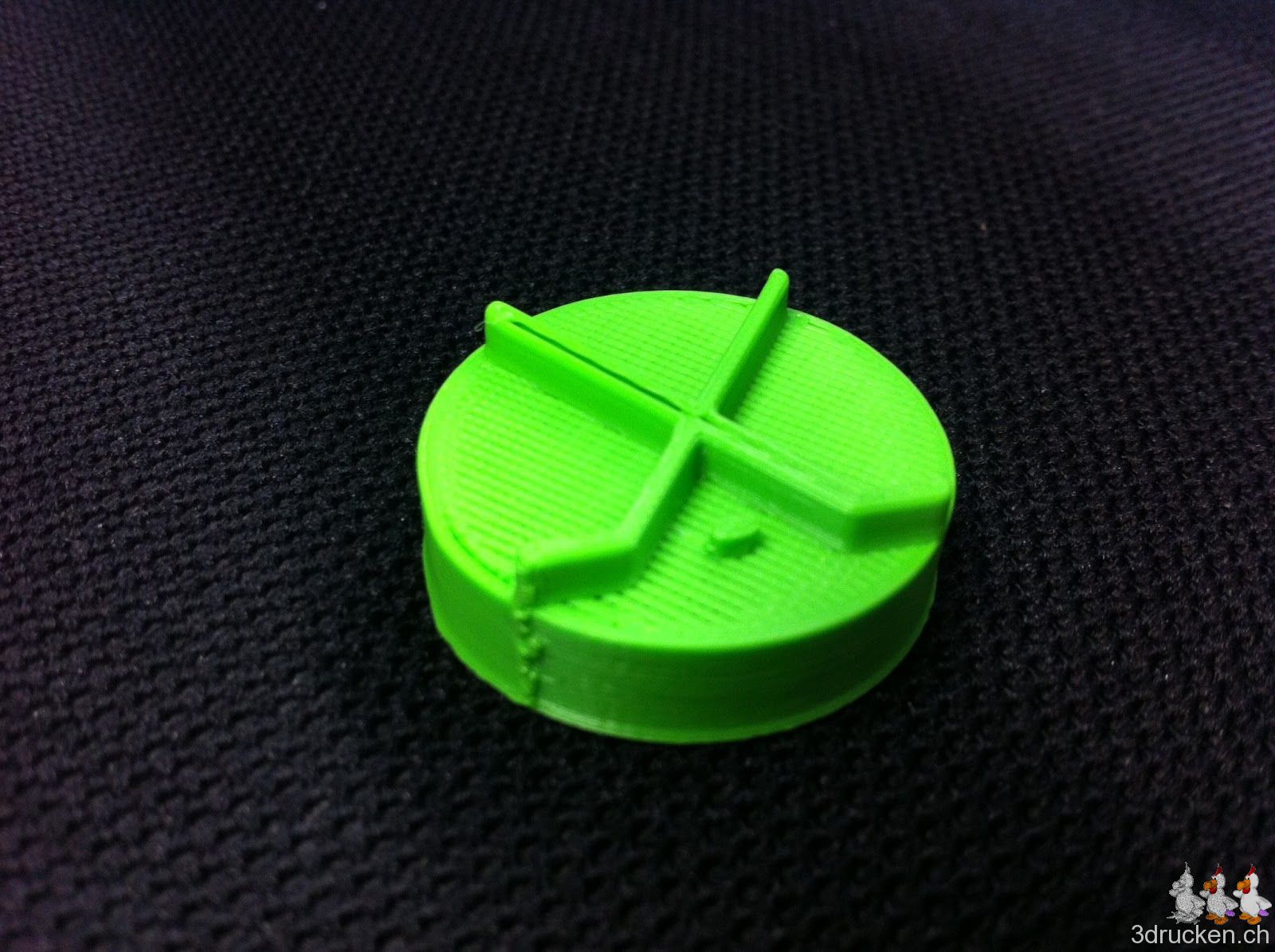 Rechtzeitig vor dem Playoff-Final (HC Fribourg Gotteron – SC Bern) druckten wir einen Hockey-Puck, heruntergeladen bei Thingiverse aus. Das Ziel war es, herauszufinden, ob der Ultimaker die Flächen gut deckt und schliesst. Wie an dem Modell zu sehen ist, hat der Drucker da noch Luft nach oben…