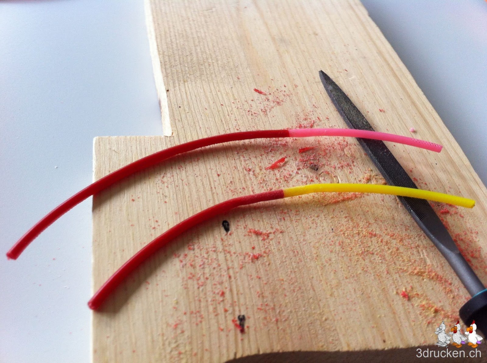 - Eventuell um und auf der Narbe mit einer Feile säubern. Feile parallel zum Draht bewegen