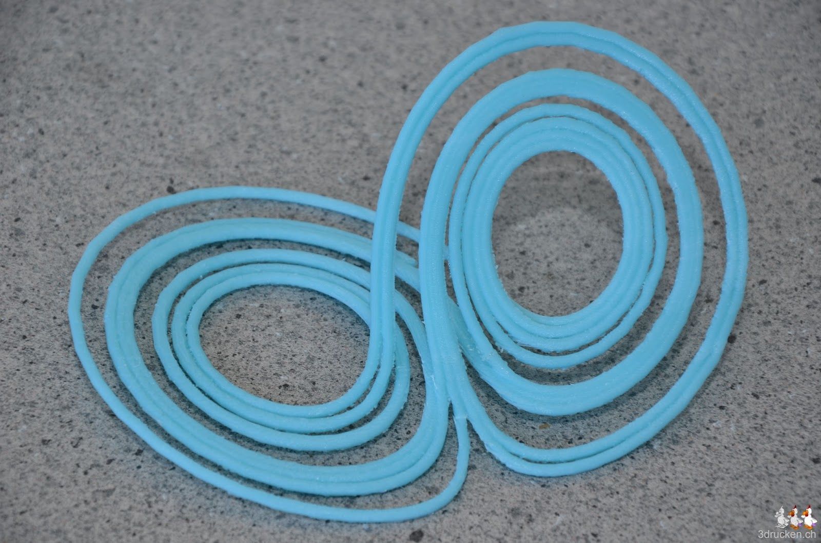 Nach 4 h 50 min war der Lorenz Attraktor fertig ausgedruckt. Die Überhänge sind teilweise spektakulär. Das Entfernen des Supports war dafür ziemlich mühsam.