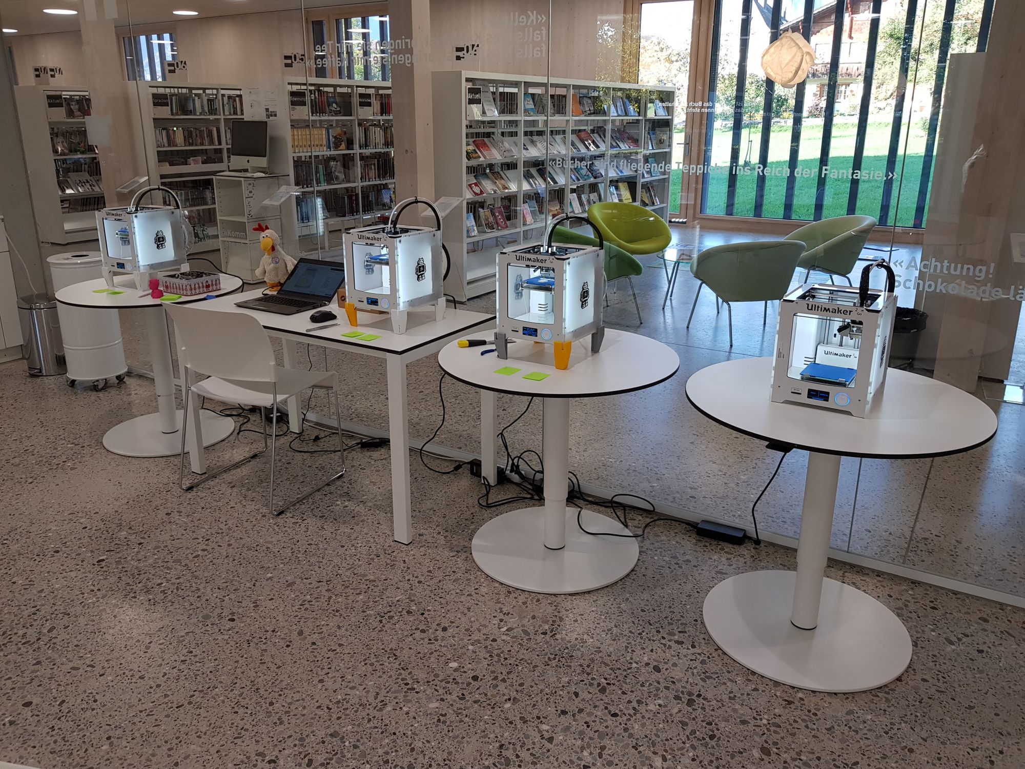 Im Oktober 2018 wurde im Auftrag der PHBern, zusammen mit der Bibliothek Spiez, viermal Mittwochs ein temporärer Makerspace eingerichtet. Am Morgen haben wir da jeweils Schulklassen empfangen, und am Nachmittag ein offenes Angebot nach Voranmeldung bestritten. Zusammen mit Mitarbeiterinnen und Mitarbeitern der Bibliothek wurden verrückte Stop-Motion Trickfilme drehen, coole VR-Brillen und spacige Hologramm Trichter basteln, im Kreativatelier ein selbst gestaltetes Necessaire nähen, schöne Anhänger und atemberaubende Traumhäuser 3D-Drucken, und nicht zuletzt, tierische Roboter selber Programmieren, angeboten. Die Schulklassen wurden von ihren Lehrpersonen begleitet, beim freien Angebot nahmen Kinder alleine teil, wurden zum Teil aber auch von Eltern oder Grosseltern begleitet.