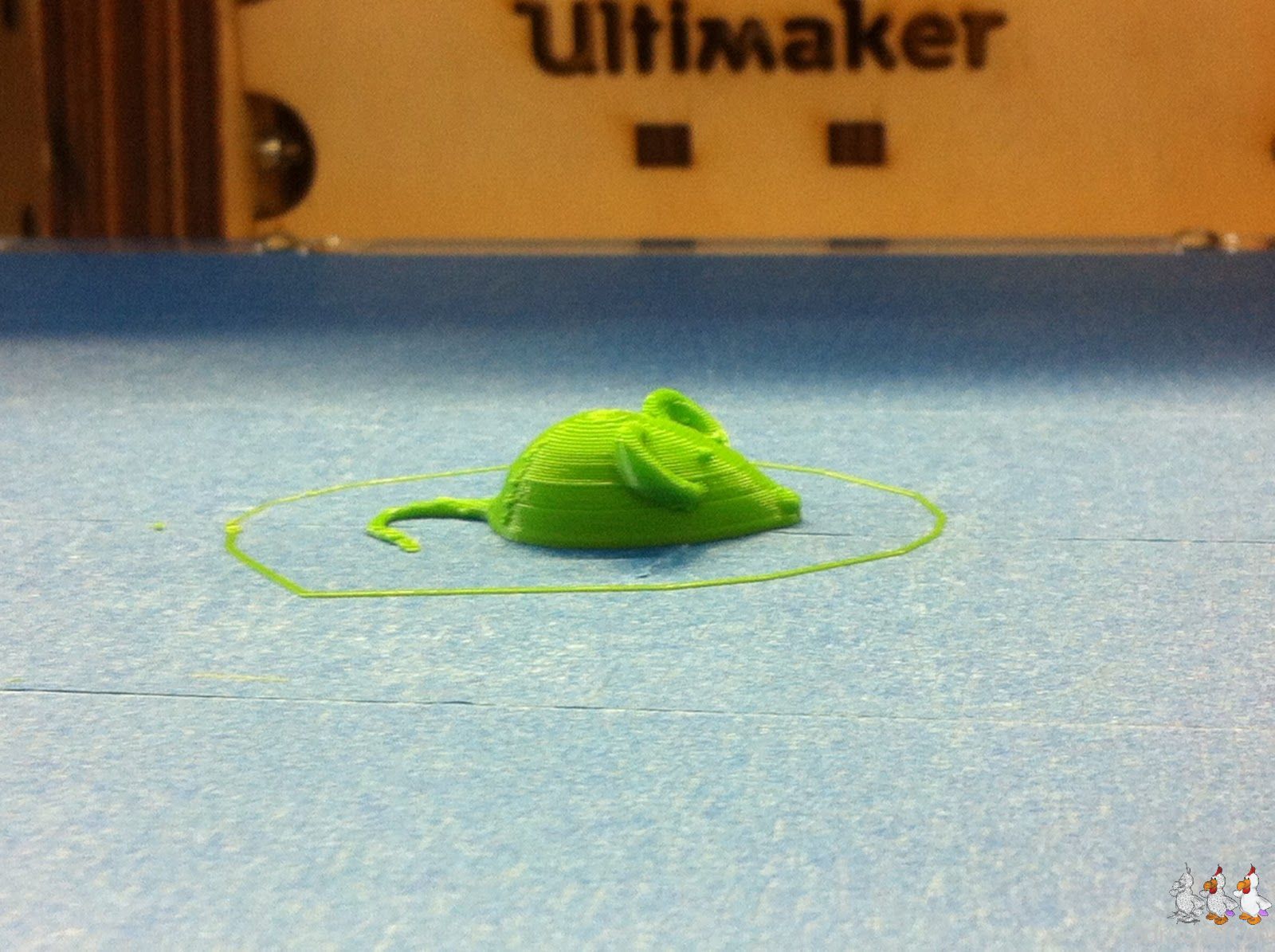 Heute druckten wir mit beiden Druckern eine Maus aus. Es war ein schneller Print. In ca. einer Viertelstunde lag eine fertige Maus auf dem Drucktisch.