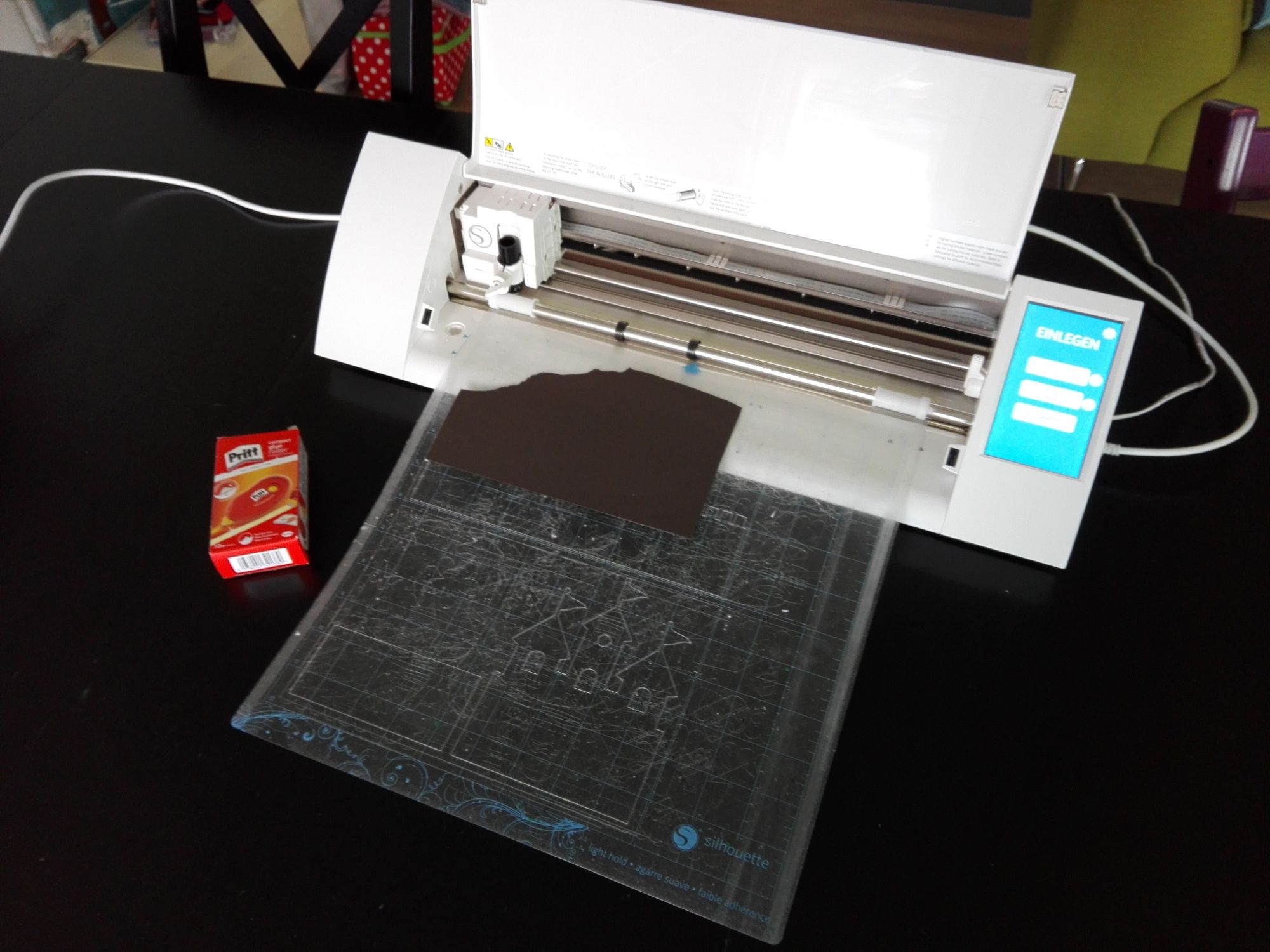 die Herstellung der schwarzen Blenden für den Rand, aus Fotokarton auf unserem Cameo Schneideplotter,