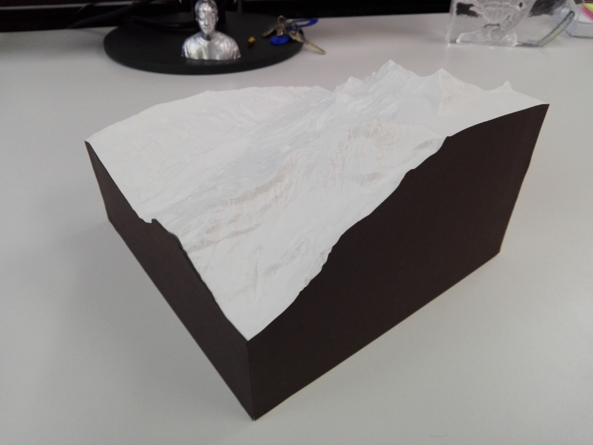 mit unserer LED-Tischlampe eine künstliche Sonne simuliert werden, damit der Schattenwurf verbesert werden konnte, und das Relief plastischer wirkte,