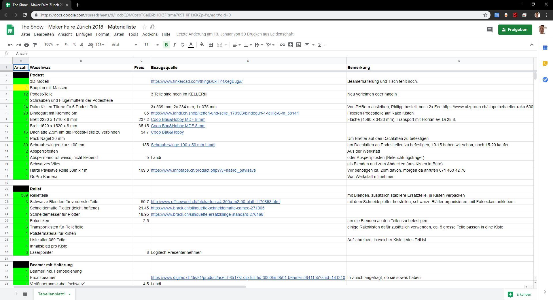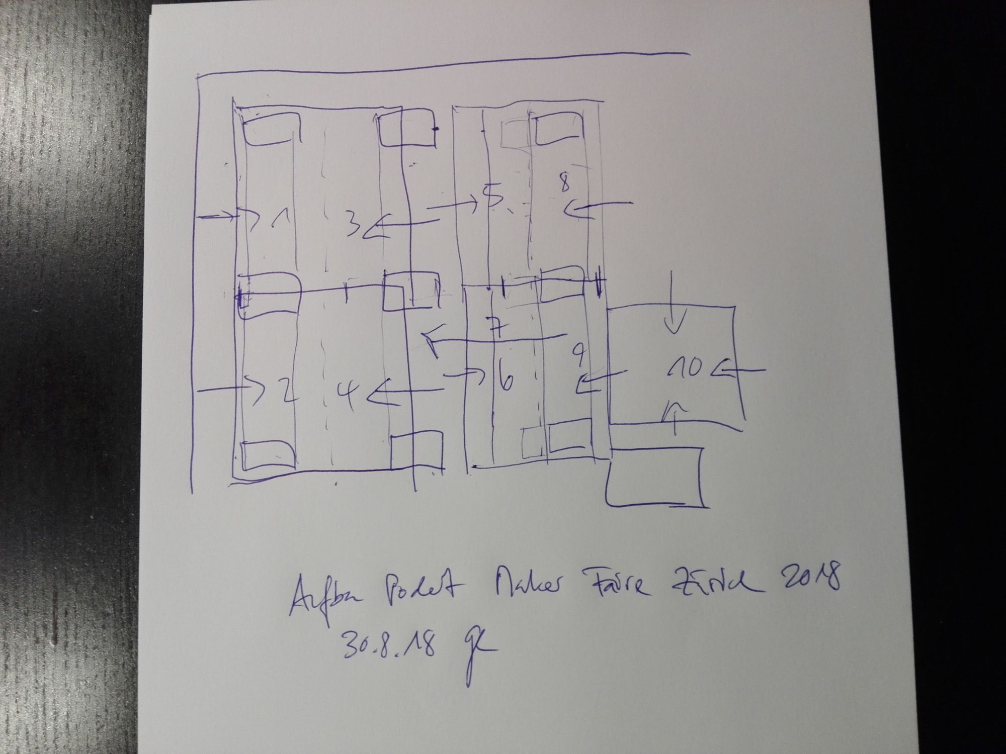 der Tisch mit dem Monitor für die Fotos von der Erstehung des Reliefs wollte aufgebaut, und die Giveaways für die Besucherinnen und Besucher darauf gestellt sein, und nicht zuletzt auch noch der 3D-Drucker in Betrieb genommen, um das Ganze zu beleben, und eine Live-Demo zu liefern, wie 3D-Druck funktioniert.