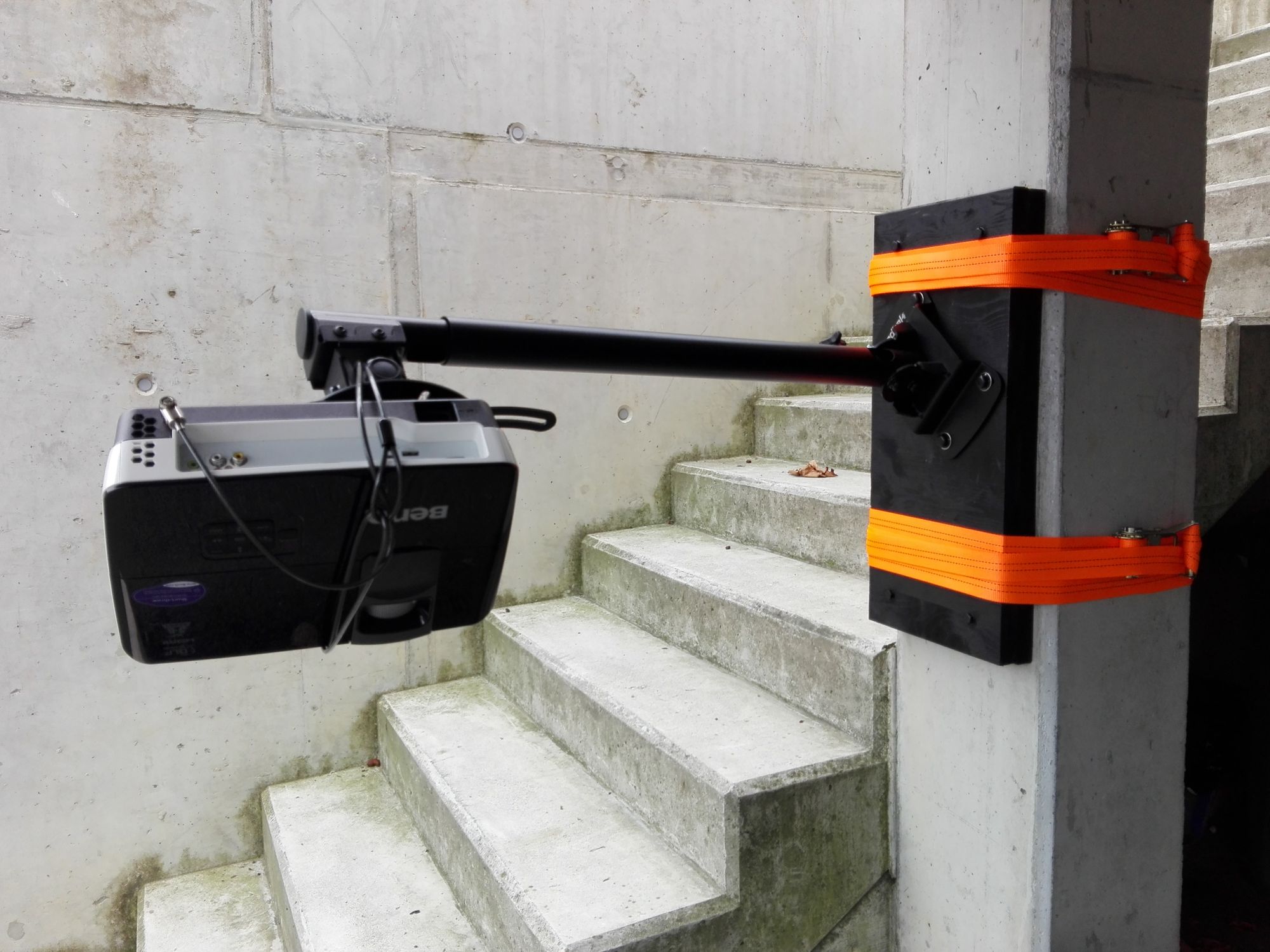 die Konstruktion einer speziell für die Montage an der vorhandenen Säule im Dynamo geeigneten Beamerhalterung,