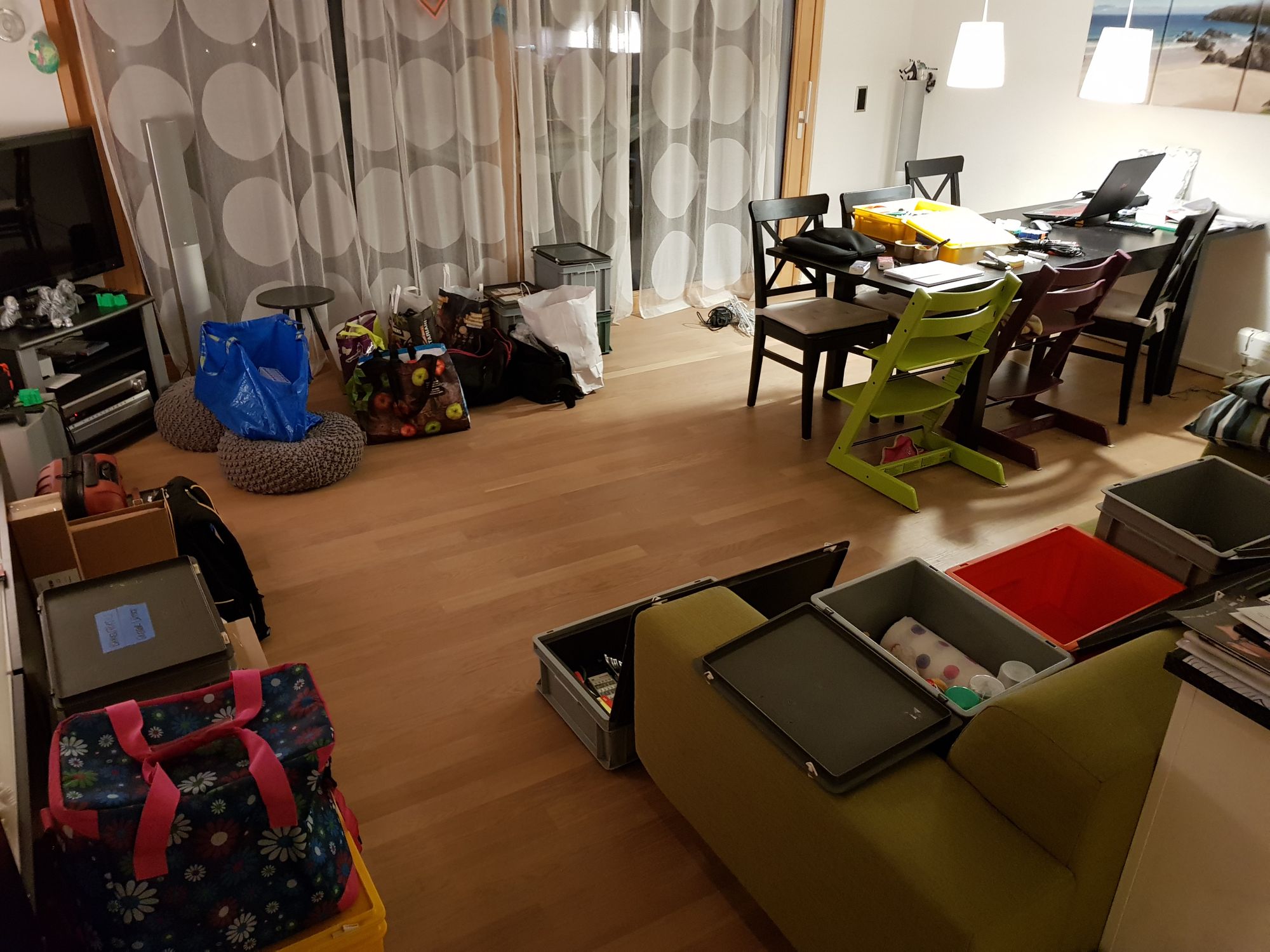 Danach fuhren wir mit dem Transportfahrzeug zu uns nach Hause, wo wir sämtliches bereitgestelltes Material noch am Abend eingeladen haben. Es waren alle froh, dass nach Wochen des Materialstapelns zuhause, nun endlich alles aus der Wohnung und dem Keller verschwand. (Einiges kam auch wieder zurück nach hause, jedoch hauptsächlich in den Keller, und nicht in die Wohnung.)