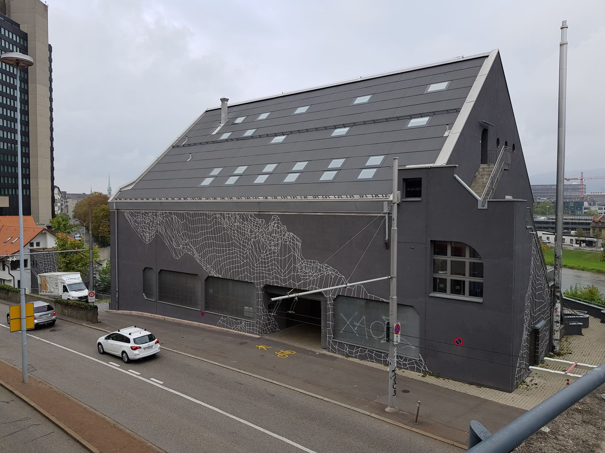 Nach etwa einer Stunde war alles Material im Transporter, und wir machten uns unverzüglich auf die Reise über den Brünig, via Luzern und Zug nach Zürich, wo uns das Navi im Endanflug auf das Dynamo doch am liebsten einen Fussweg mit Treppe hinunter lotsen wollte.
