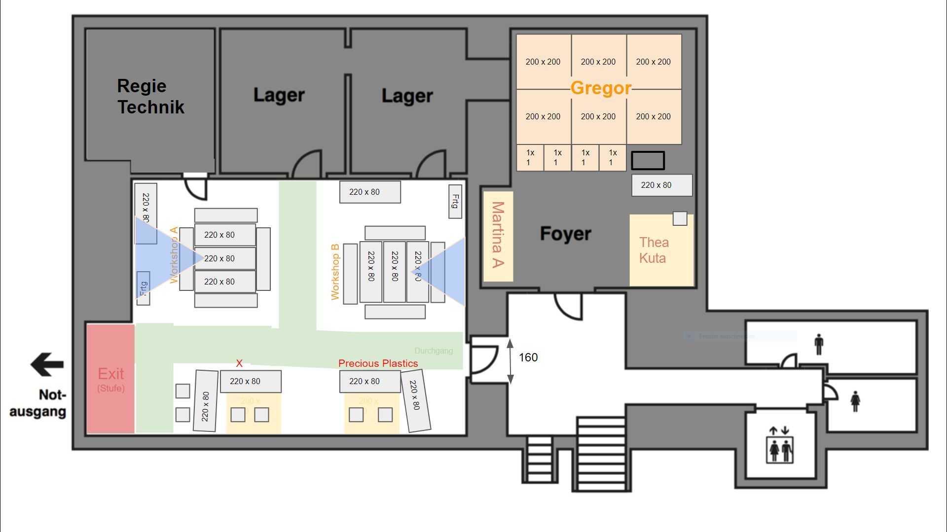 Die eine Treppe hatte es jedoch ziemlich in sich, dafür wartete oben ein jungfräulicher Saal auf uns und unser mitgebrachtes Material.
