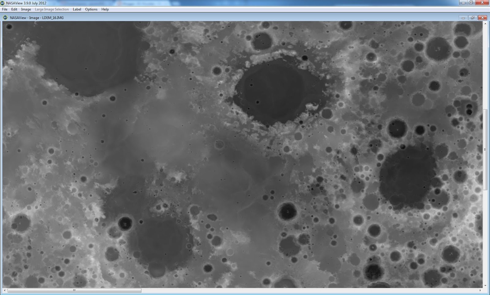 Die 16er-Datei welche wir geladen haben ist die zweitkleinste, es gibt drunter nur noch eine 4er, darüber 64, 128, 256, 512 und sogar 1024er. Die 1024er-Dateien sind ganze 900 MB gross und beinhalten nur einen kleinen Bereich der Mondoberfläche. Da einen interessanten Ausschnitt zu finden machen wir uns nun zum nächsten Ziel. Wir suchen also gerade einen geeigneten Landeplatz für unsere eigene Mondlandung, wenn auch mit anderen Kriterien als die NASA vor 45 Jahren.