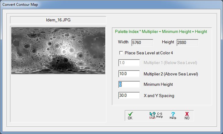 Das Ergebnis ist aber nicht gerade berauschend, und wie es scheint haben wir so die ganze Mondoberfläche projiziert erhalten. Wir müssen wohl eine andere Datei als diese 16er herunterladen, oder mit Photoshop einen Ausschnitt aus der JPEG-Datei nehmen, wie z.B. im nächsten Bild.