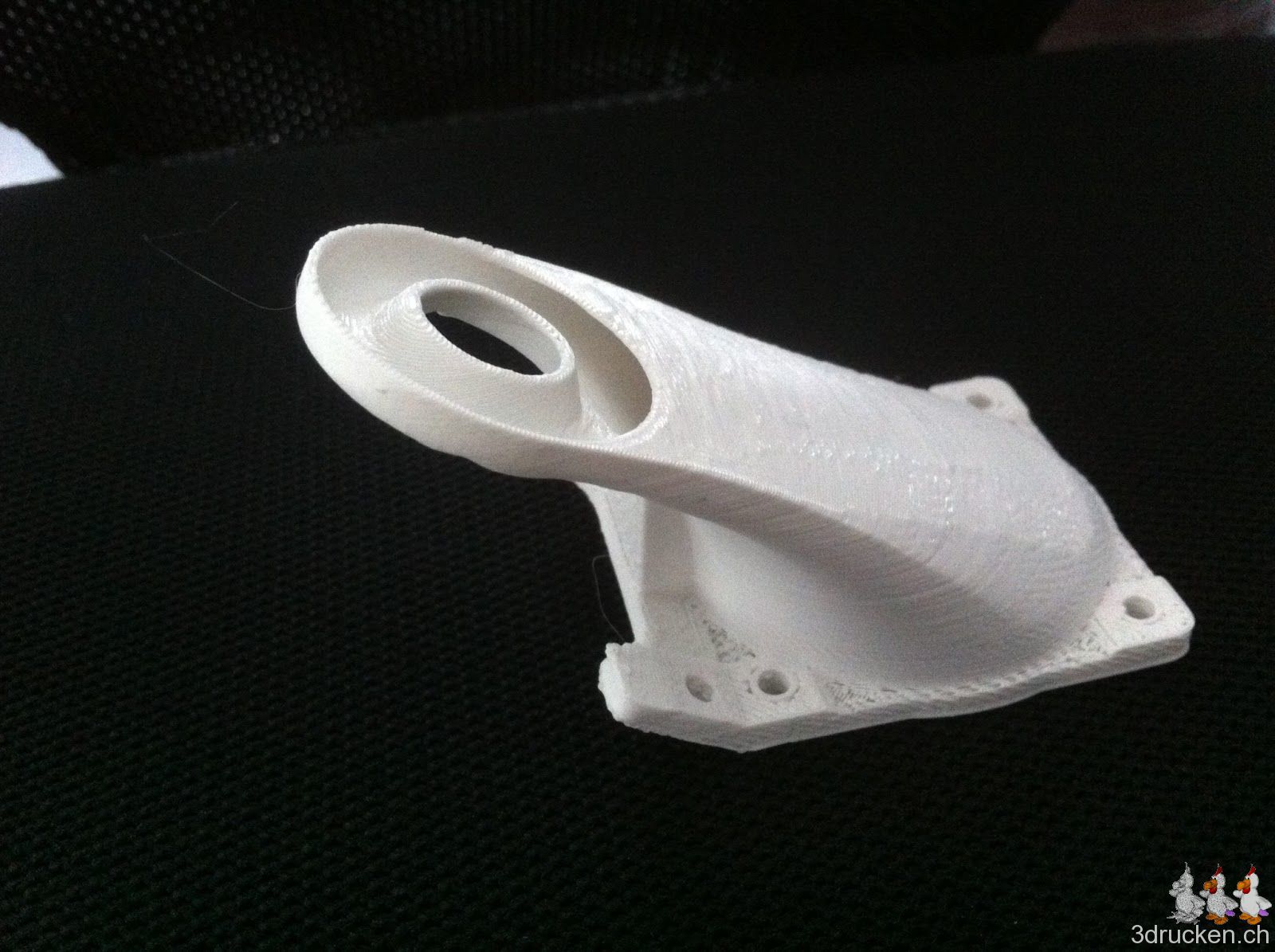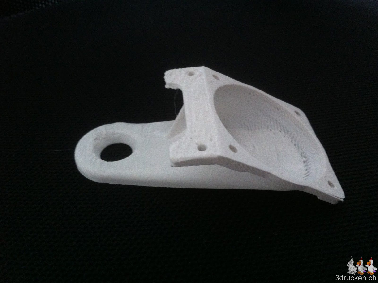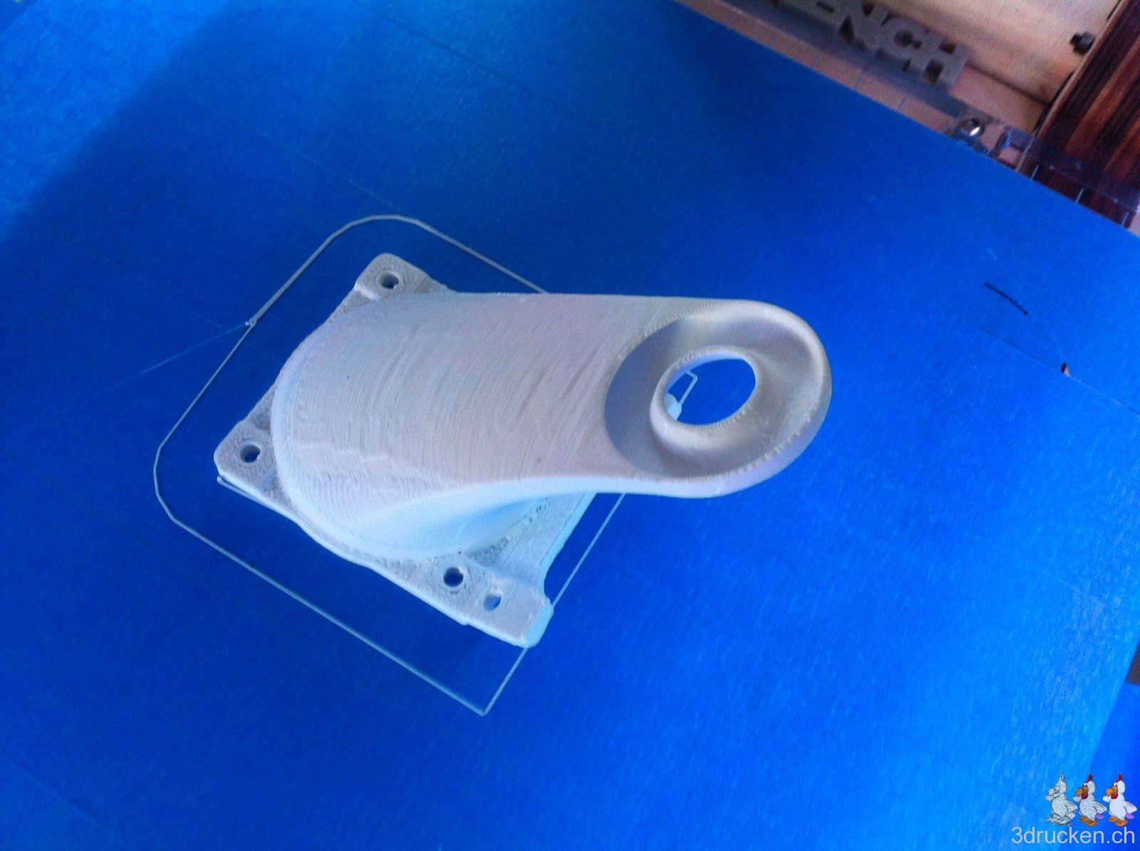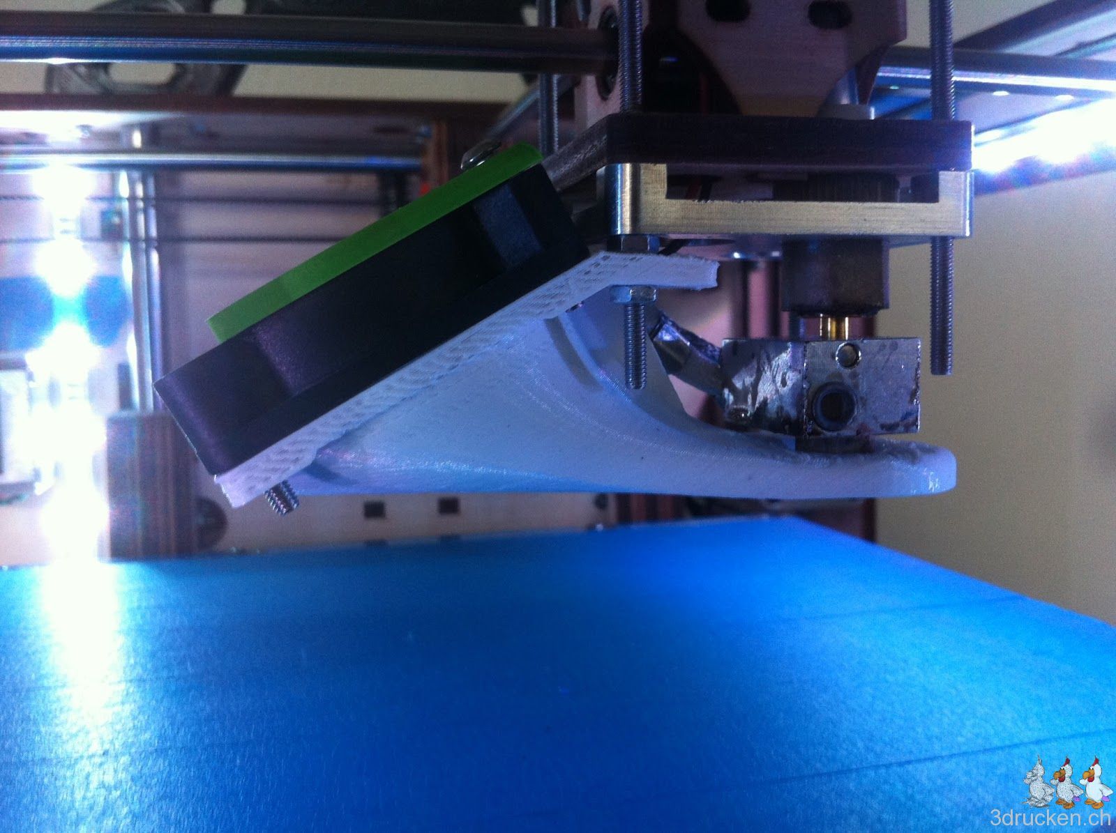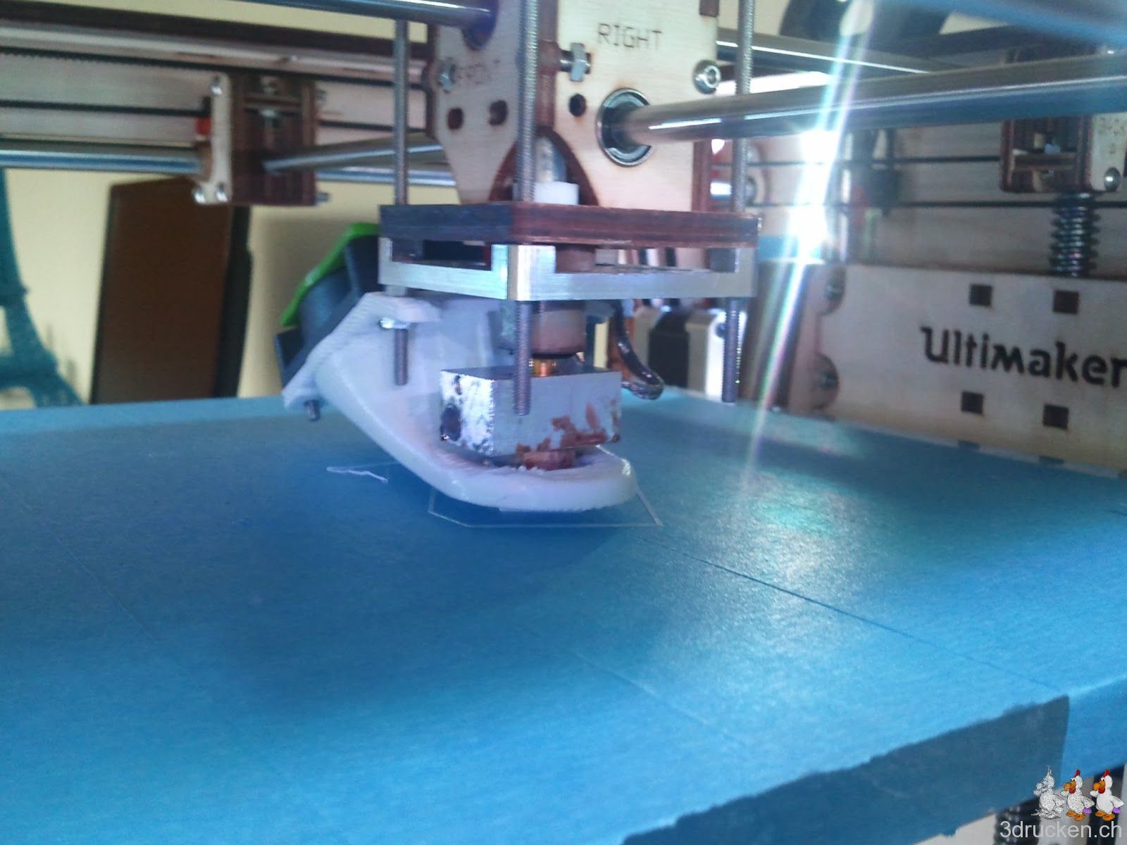 Heute druckten wir eine neue Lüfterverkleidung für unseren Ultimaker aus. Wir montierten das Ganze und starteten gleich einen ersten Testversuch, welcher die Lüfterverkleidung bestand. Bis jetzt sehen wir nur einen Nachteil darin: Der Blick auf den Druck-Kopf wird einem verwehrt. Dies kann besonders beim ersten Layer für Schwierigkeiten sorgen.