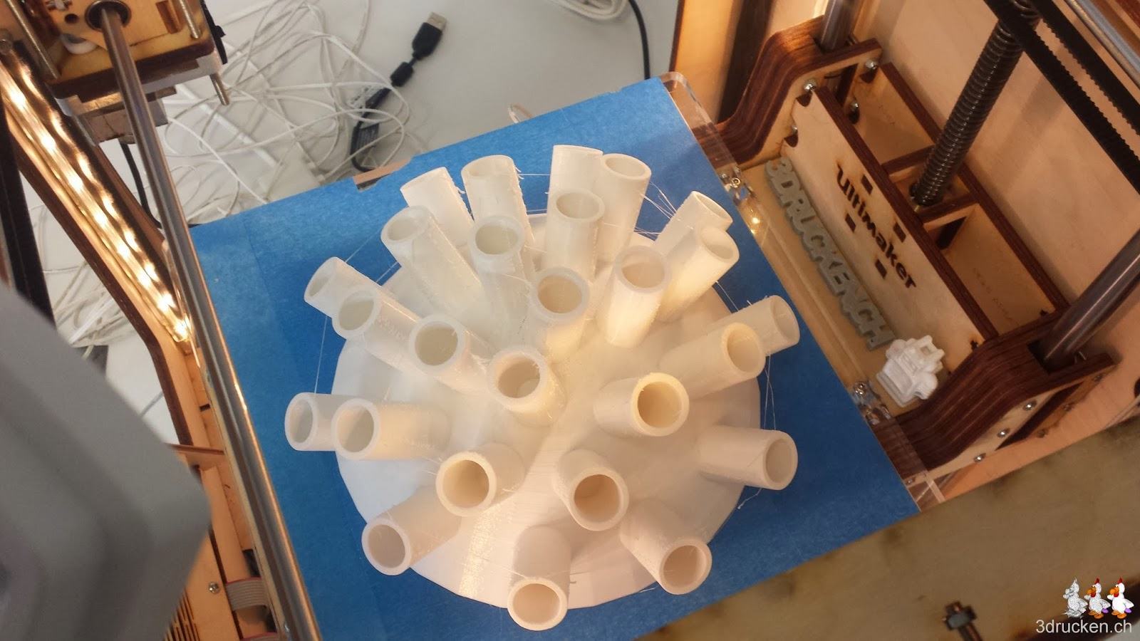 Es stellte sich heraus, dass es in Tinkercad schwierig ist, die Verbindungsstücke in regelmässigen Winkeln anzuordnen. Wir haben uns entschieden, nicht diesen hohen Anspruch zu erheben.