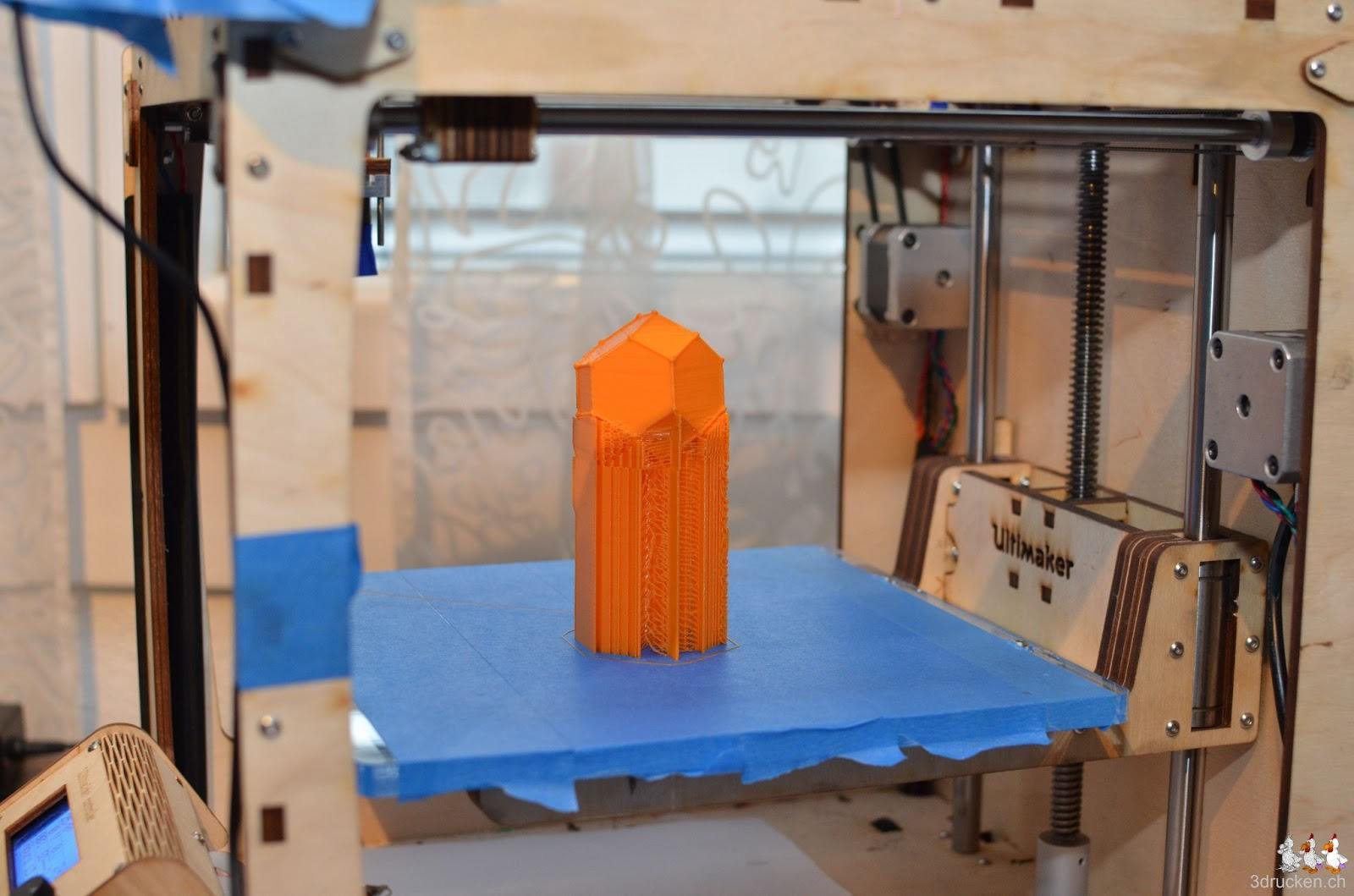 Mit verbesserten Einstellungen für den Support druckten wir den Oktaederstumpf, einen Archimedischen Körper mit 6 Quadraten und 8 Sechsecken als Oberfläche. Die Drucktemperatur mussten wir von optimistischen 210° C während des Drucks wieder auf 220° C anheben, damit der Materialfluss gut funktionierte.