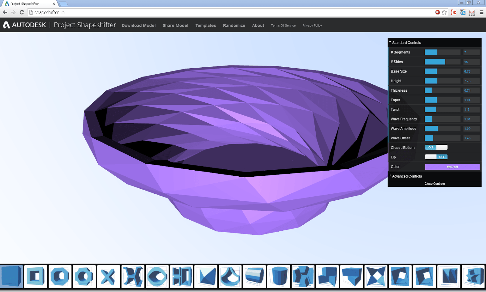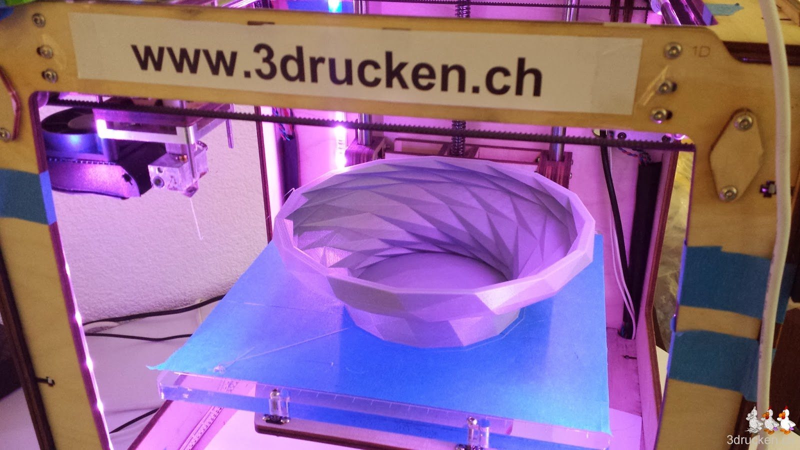 Shapeshifter ist ein weiteres Projekt von Autodesk im Bereich 3D-Modellieren und 3D-Drucken. Es zeigt eindrücklich, wie einfach das Erstellen von Objekten ausgehend von einer Grundform ist. Über einzelne Schieberegler lassen sich Parameter ändern, was zu einer grossen Variation von Endprodukten führt. Wir haben uns eine schöne grösse Schale generiert und diese auf unserem ersten Ultimaker ausgedruckt. Da rein kommen jetzt die vielen kleinen 3D-Drucke welche hier so rumliegen, oder an einer nächsten Veranstaltung die Giveaways.