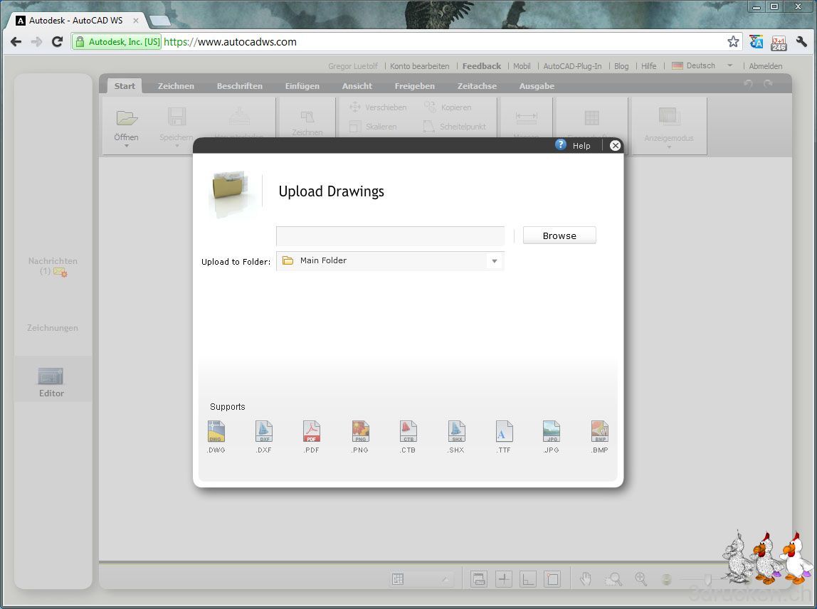 Online-Editor von Autodesk, Import von Modellen/Zeichnungen in den Formaten dwg, dxf, ctb, shx möglich. Stellte sich allerdings bei unseren Tests als einiges komplizierter dar, als das auf den ersten Blick aussah.