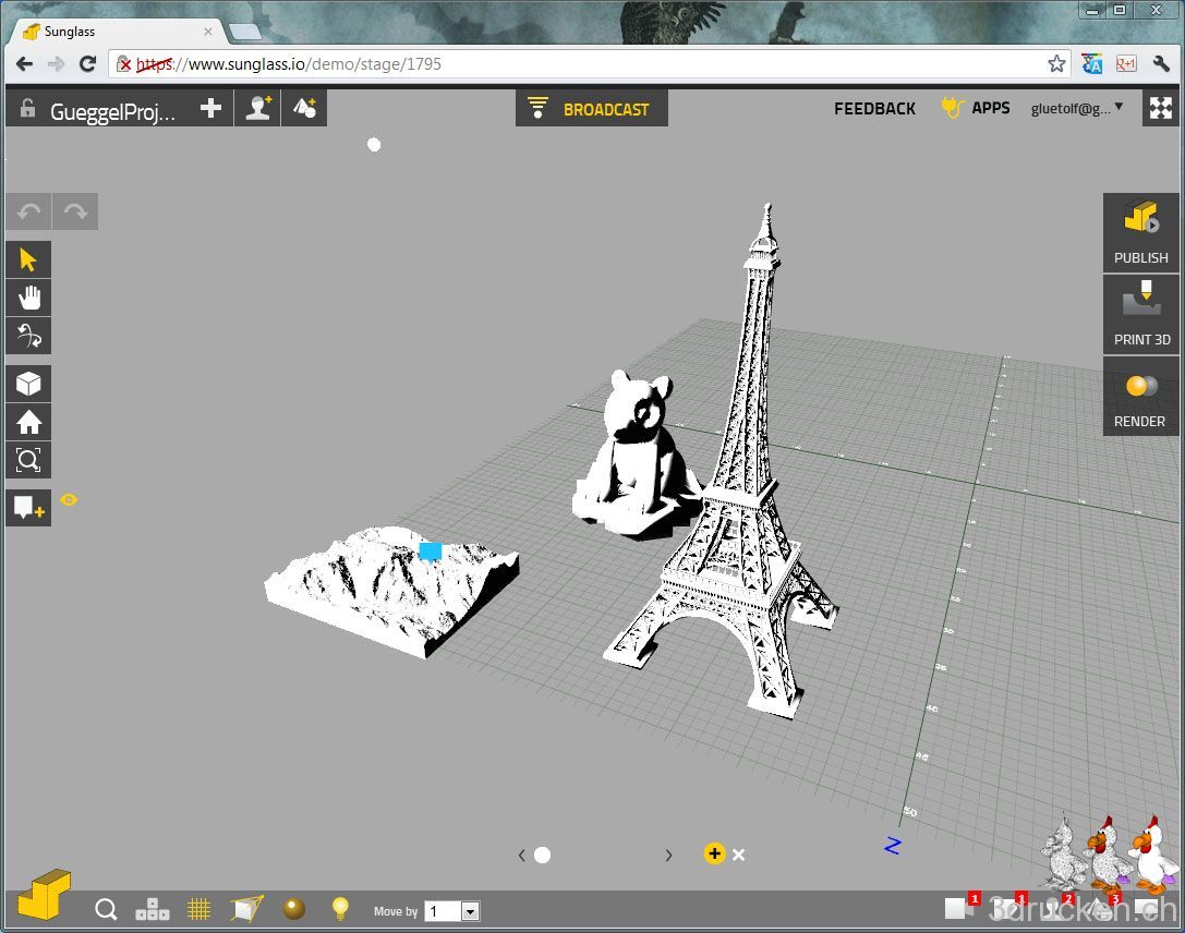 Sieht vielversprechend aus, Voraussetzung ist ein Browser der WebGL unterstützt. Am besten Google Chrome oder Mozilla Firefox. Zudem ist laut API Plugin-Dokumentation, eine direkte Integration in SketchUp, zumindest auf OS X mittels Plugin bereits möglich. Modelle lassen sich einfach ins Browserfenster hineinziehen, per Dateidialog auswählen, oder aus verschiedensten Quellen aus dem Web direkt importiert. Unsere Test-Umgebung lässt sich auch via Viewer direkt hier einbinden.