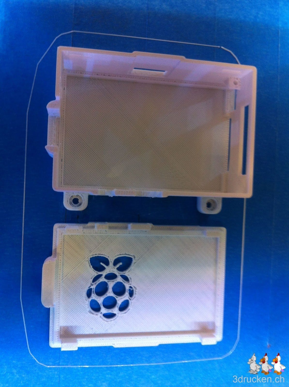 Die Vorbereitungen um auch den zweiten Raspberry am Ultimaker zu montieren laufen. Gestern Abend starteten wir noch das Raspberry-Gehäuse als Ausdruck. Der Drucker arbeitete schön und sauber. Bald werden wir auch diesen Raspberry definitiv mit Schrauben fixieren.