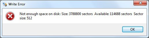 Beim Versuch die 4 GB SD-Karte zu beschreiben scheitert der Win32 Disk Imager mit der Fehlermeldung: