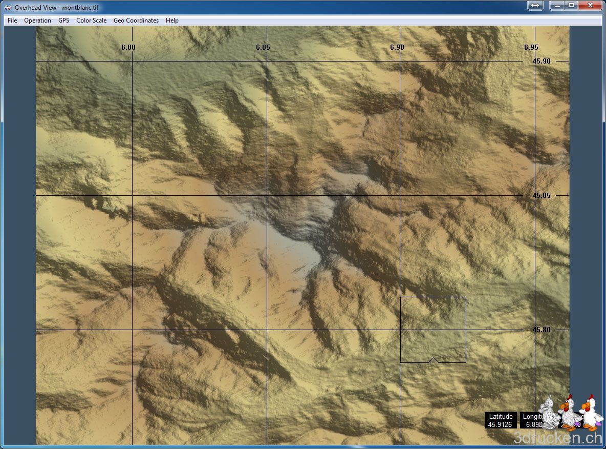 Auf Anregung aus der Thingiverse-Community erstellen wir heute ein druckbares Relief im STL-Format des Mont Blanc, laut Wikipedia mit 4810 m.ü.M. höchster Berg der Alpen.