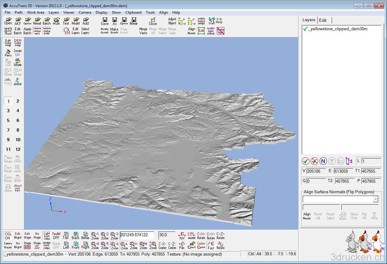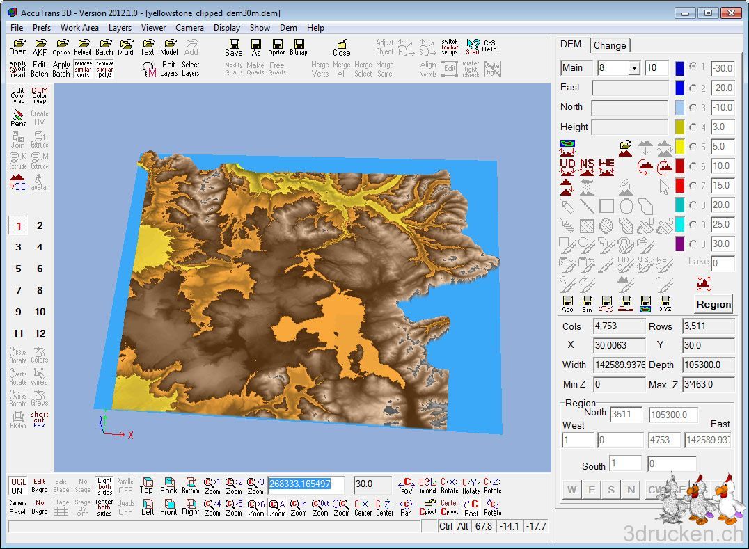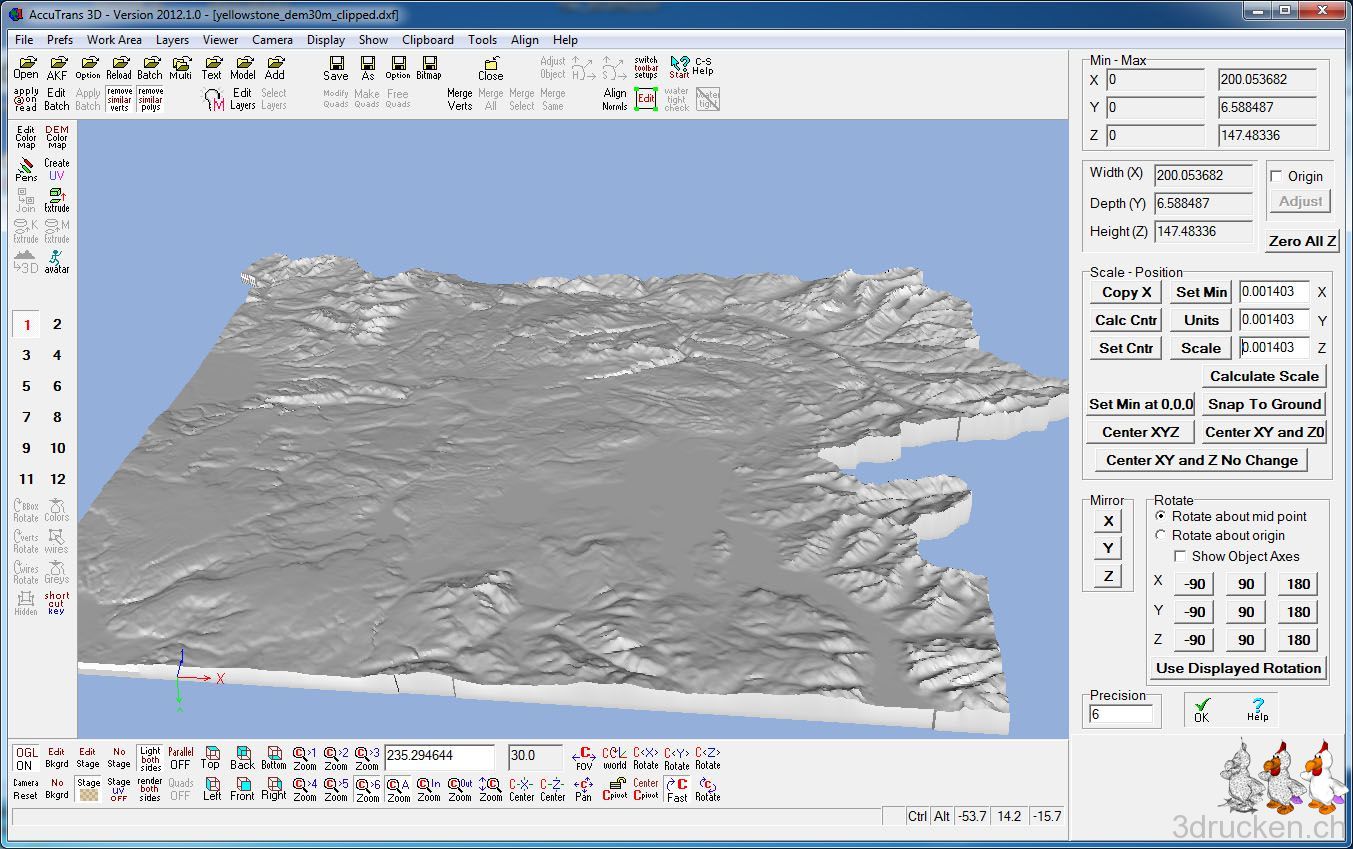 Das USGS ASCII DEM aus 3DEM konnten wir dann in AccuTrans 3D laden.