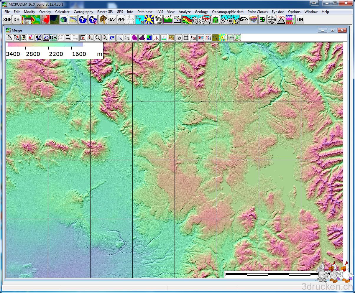 Danach haben wir das GeoTIFF DEM in 3DEM geladen, und die Daten anschliessend mit [File].[SAVE USGS ASCII] als USGS ASCII DEM exportiert.