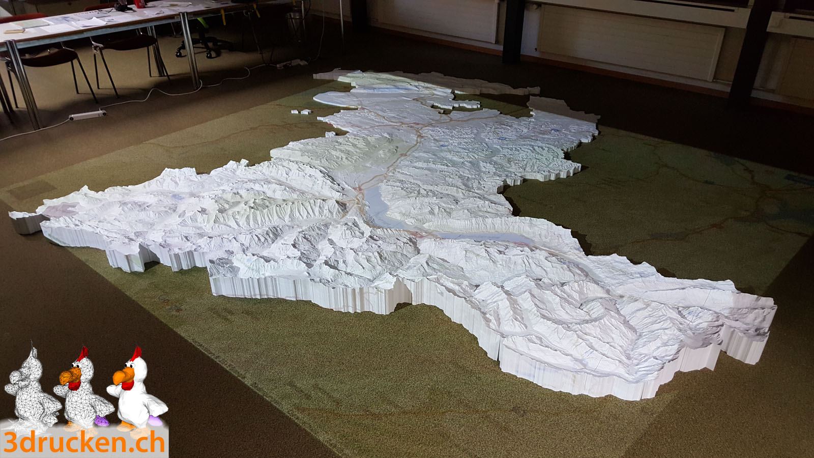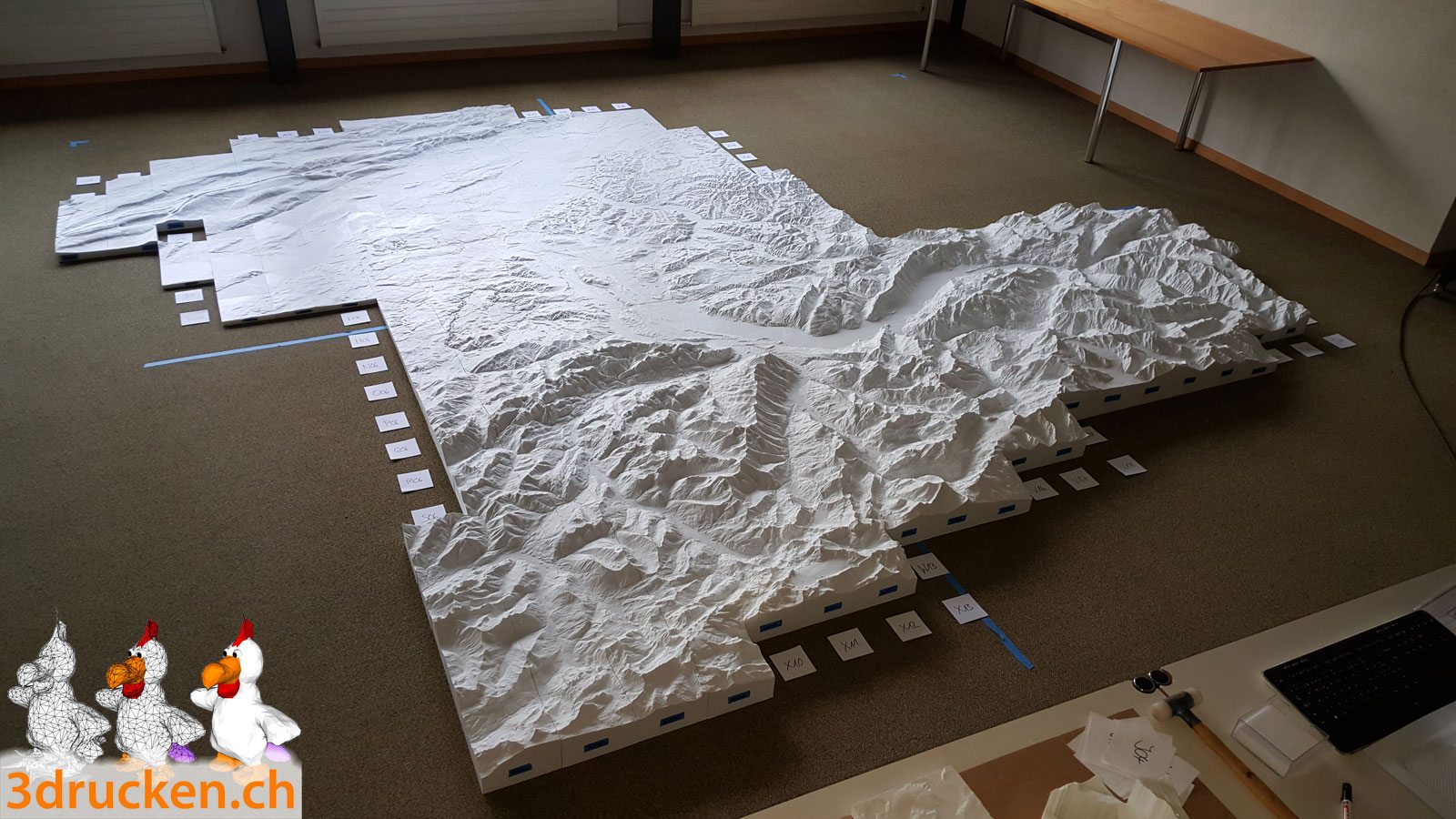 Wir haben in unserem Artikel: How to generate printable 3D geographical maps beschrieben, wie man aus (kostenlosen) Geländedaten schöne Reliefs für den 3D-Druck herstellen kann. Die meisten digitalen Modelle für unsere Reliefs sind in unserer Collection: Terrain Models auf Thingiverse zu finden. Wir bieten euch die Fertigung von Geländereliefs auf Anfrage an.