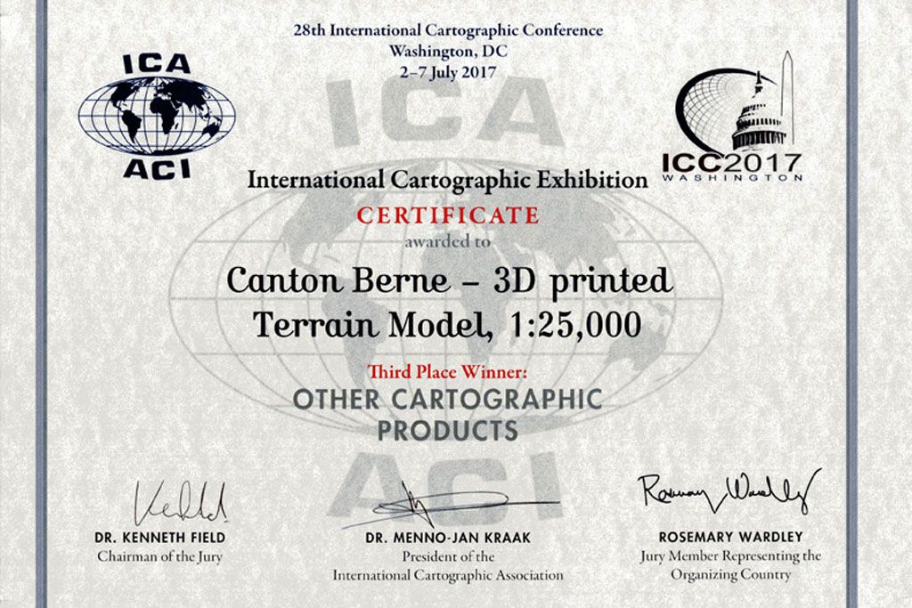 An der Internationalen Kartographie Konferenz 2017 in Washington D.C. haben wir mit unserem Relief des Kantons Bern, den 3. Rang in der Kategorie „Other Cartographic Products“ gewonnen. Übersicht aller Gewinner