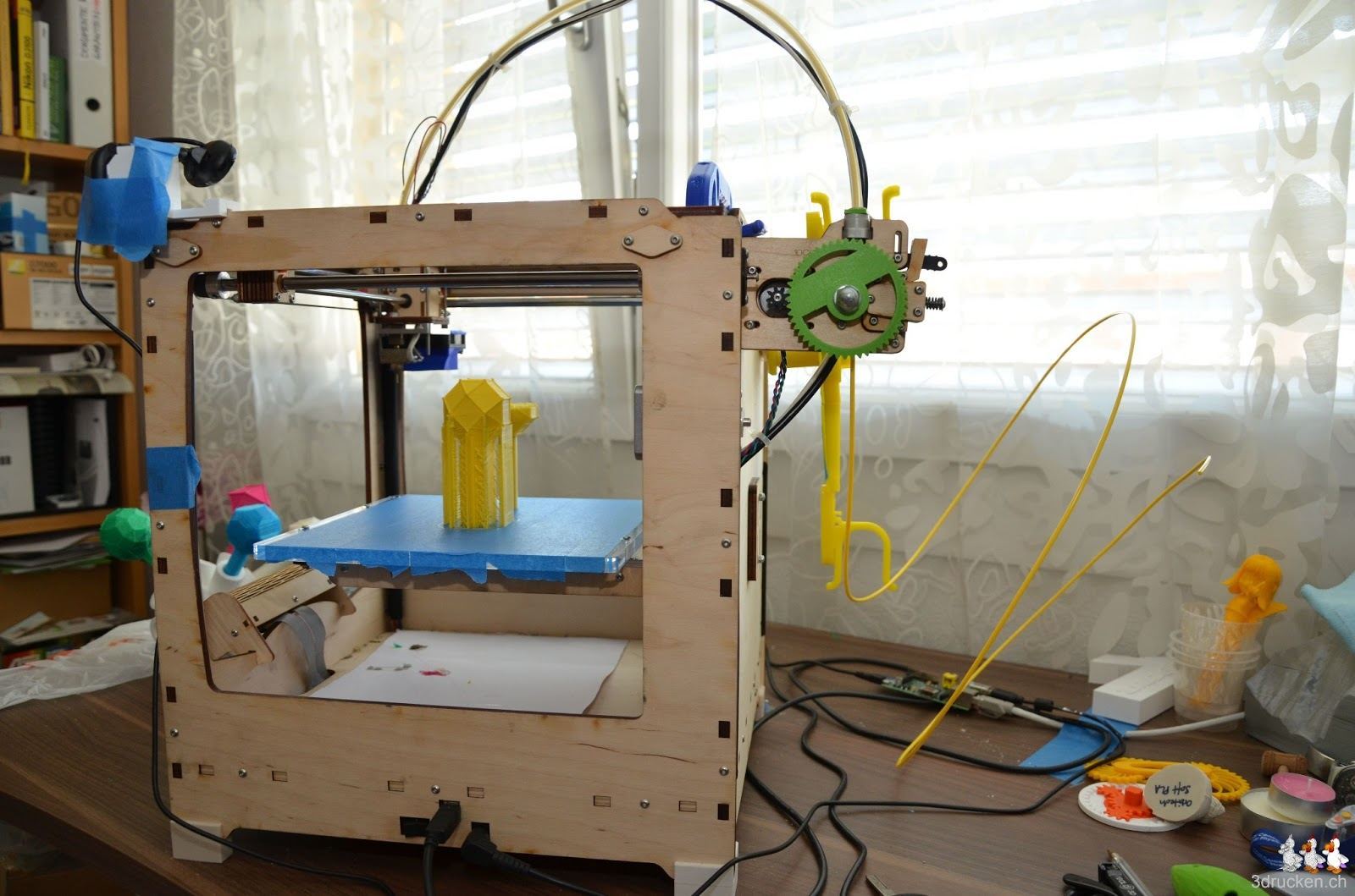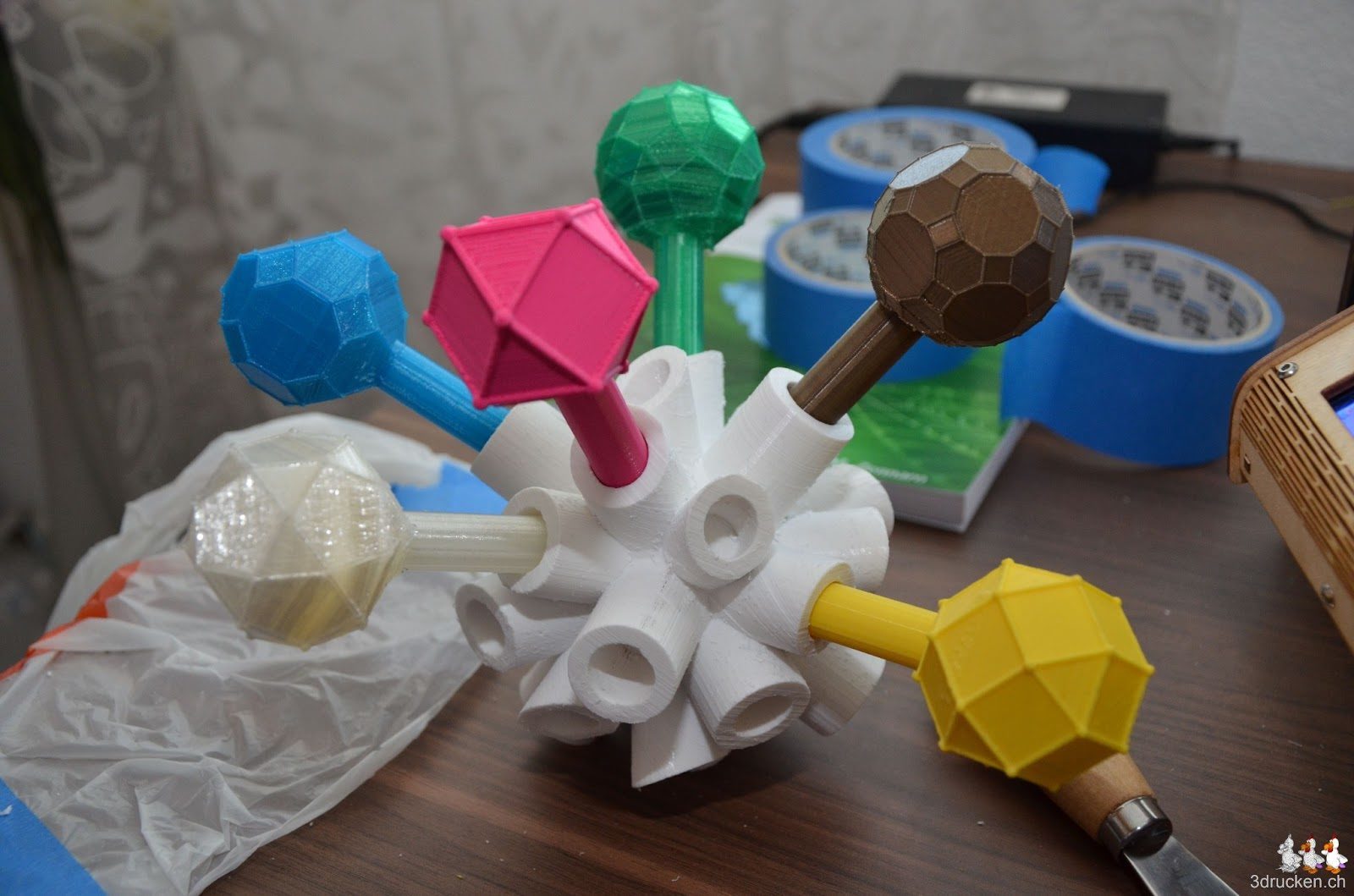 So, den Draht lose hinter dem Drucker deponiert hat es dann mit dem Druck des Rhombenkuboktaeder doch noch geklappt. Dieser Archimedische Körper besitzt eine Oberfläche, welche sich aus 8 gleichseitigen Dreiecken und 18 Quadraten zusammensetzt. Gedruckt in 3 h 33 min auf dem Ultimaker. Viel ist vom Draht nicht übrig geblieben.
