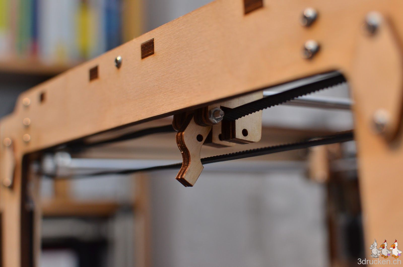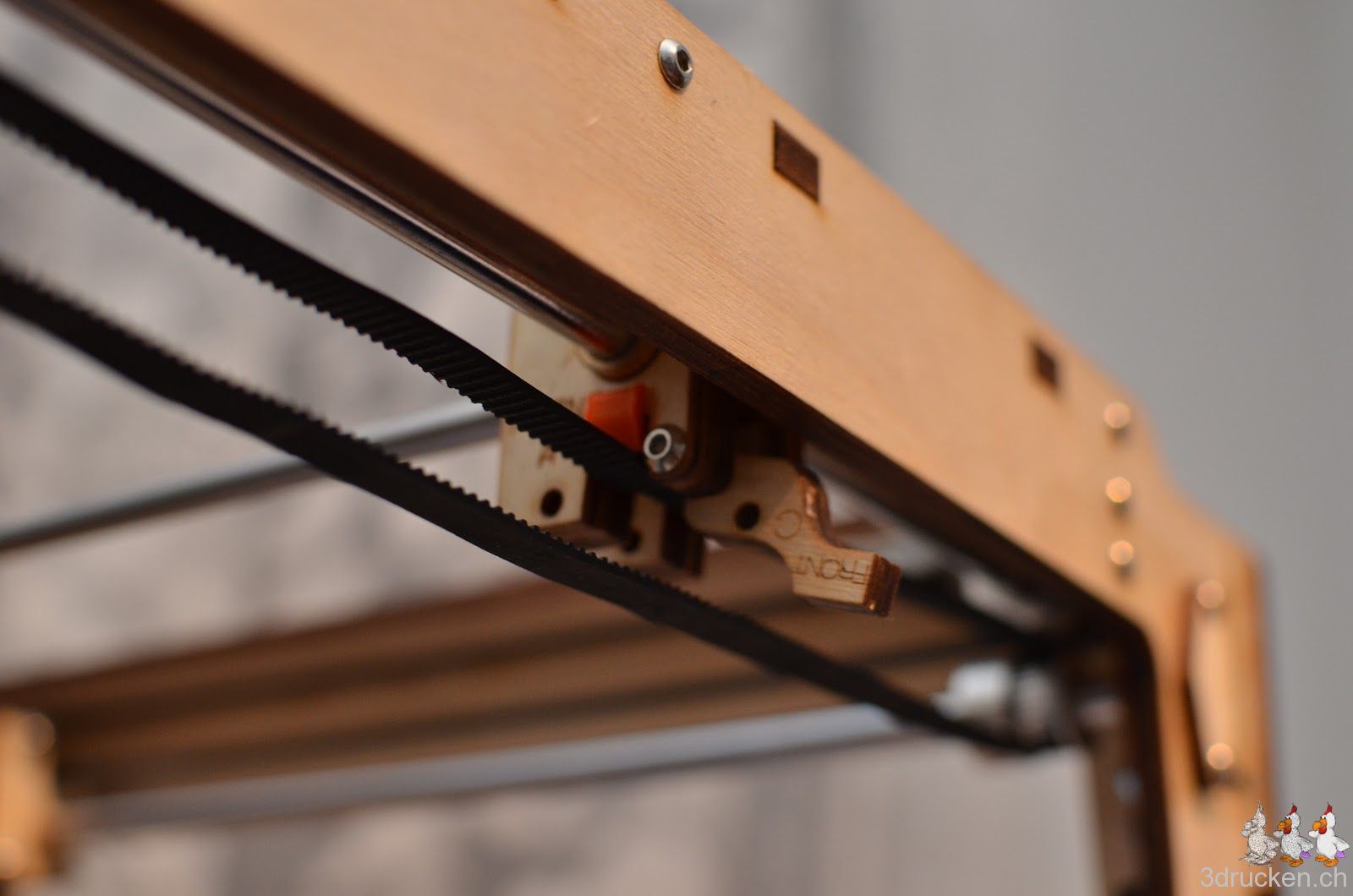 Die Spannung der Riemen an unserem Ultimaker war trotz eingesetzter Riemenspanner ziemlich verschieden. Nach dem Hot End V2 Upgrade war es uns nicht gelungen, die vorher erzielte Druckqualität wieder zu erreichen. Dies war nun unter anderem nur möglich, weil wir die bisher eingesetzten Riemenspanner durch neue ersetzt haben.