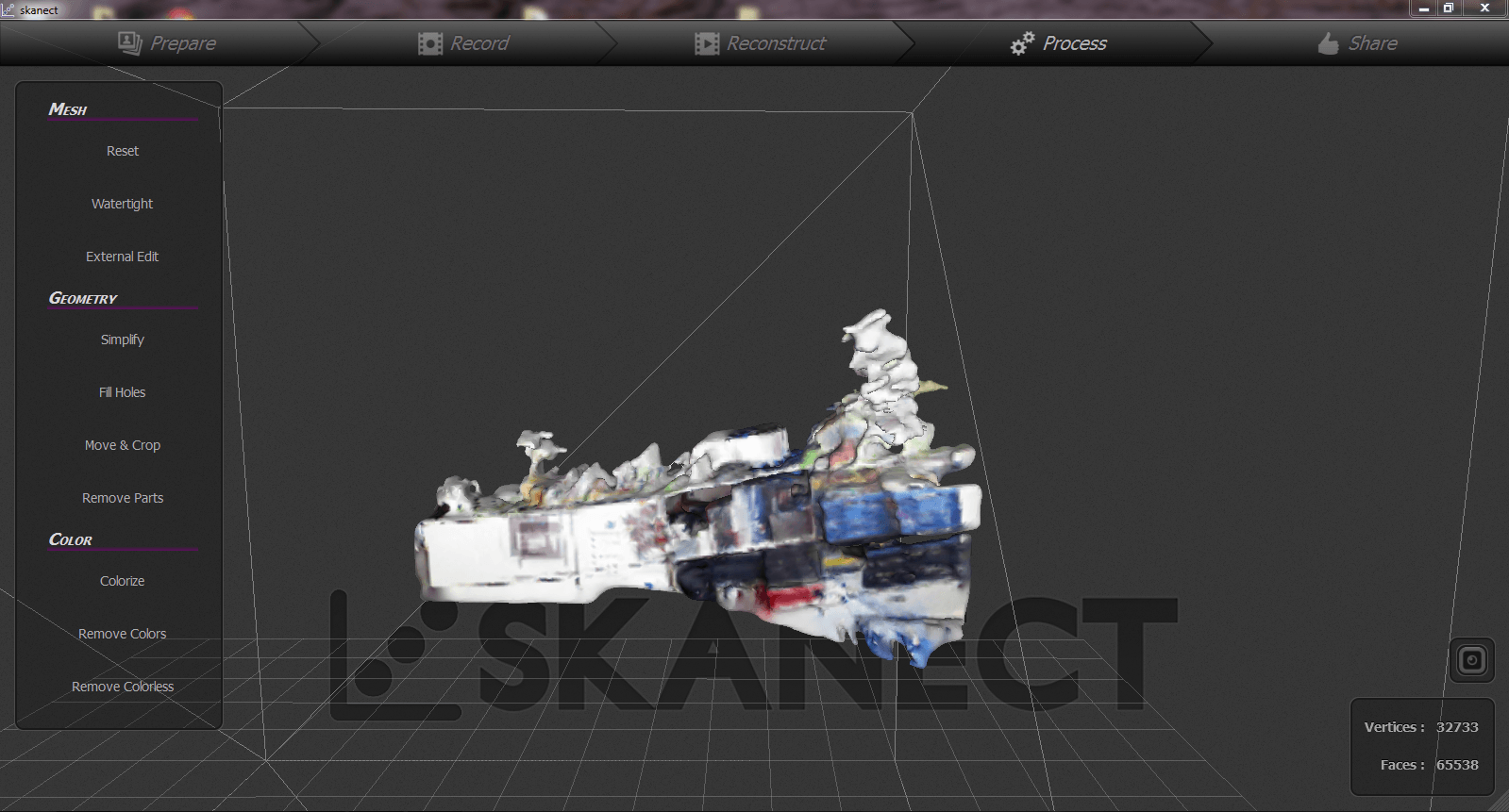 Heute probierten wir eine neue Software aus, um mit der Kinect zu scannen. Die Software namens Skanect hat uns positiv überrascht und besticht durch ihre einfache Bedienung.Es ist wichtig, dass man die richtige Einstellung für den Scan auswählt. Ein ersten Scan haben wir von unserem Regal gemacht. Ebenfalls ist es praktisch, dass man den Scan innerhalb vom Programm bearbeiten und erstaunlich einfach korrigieren kann.