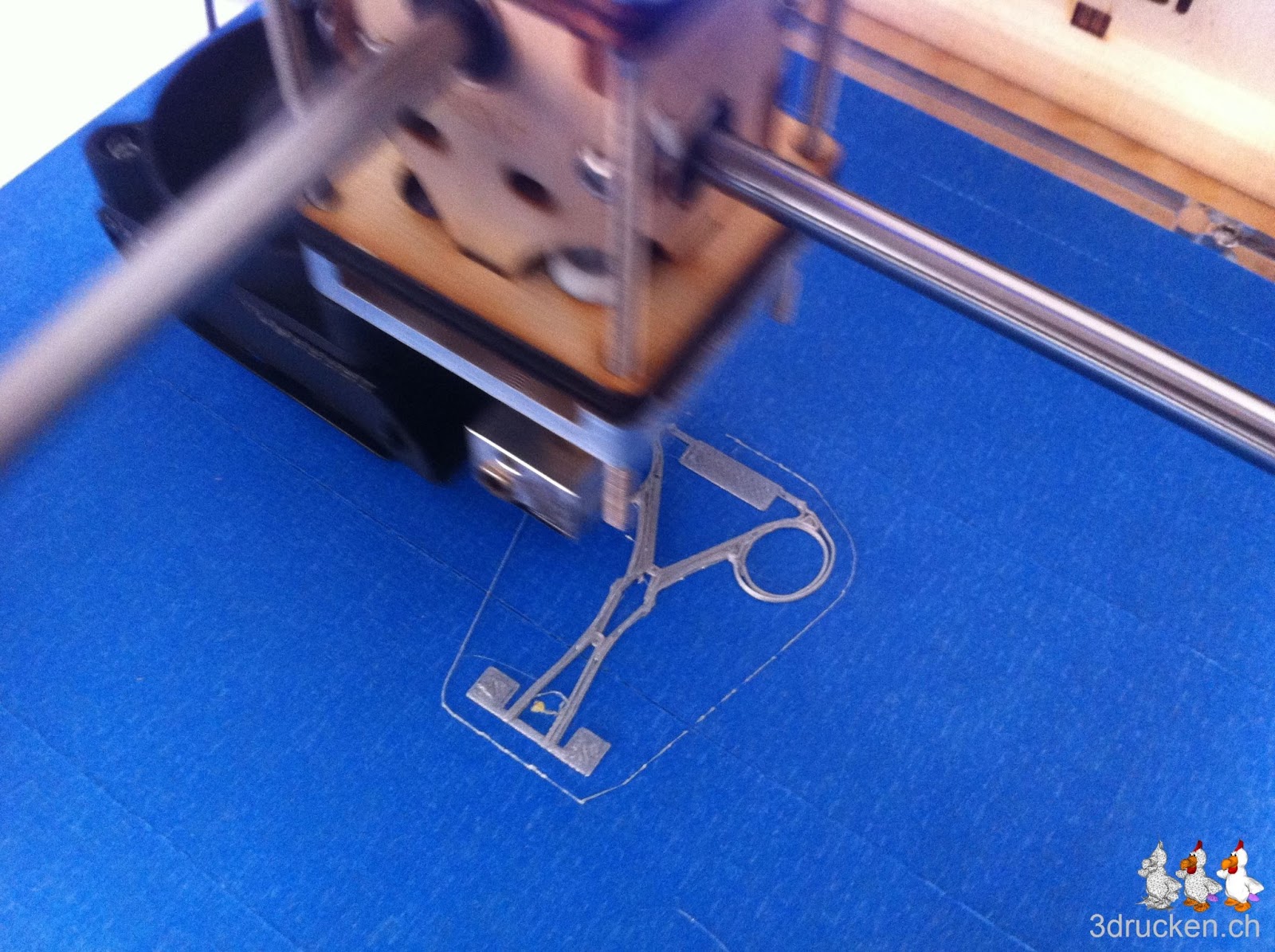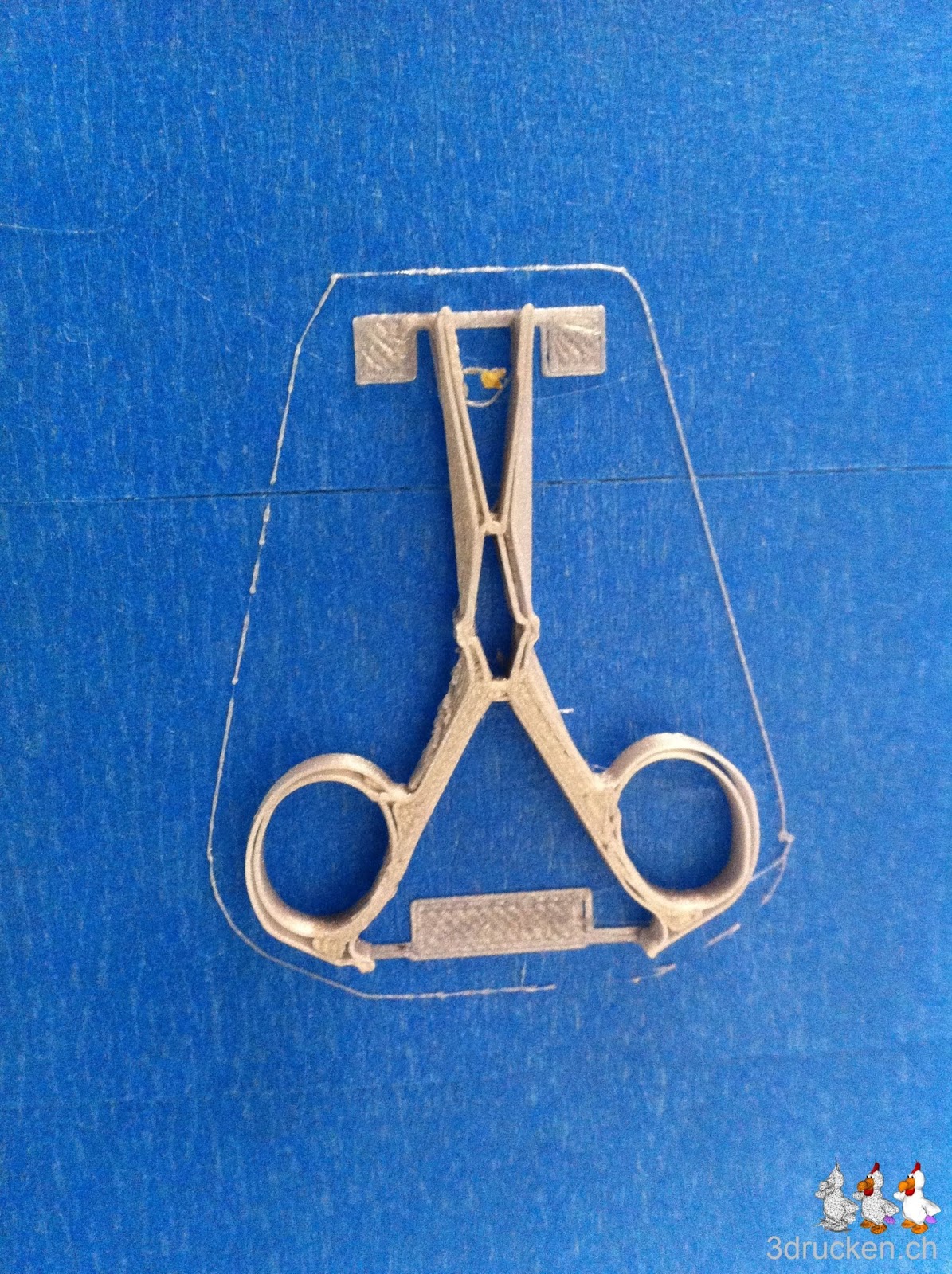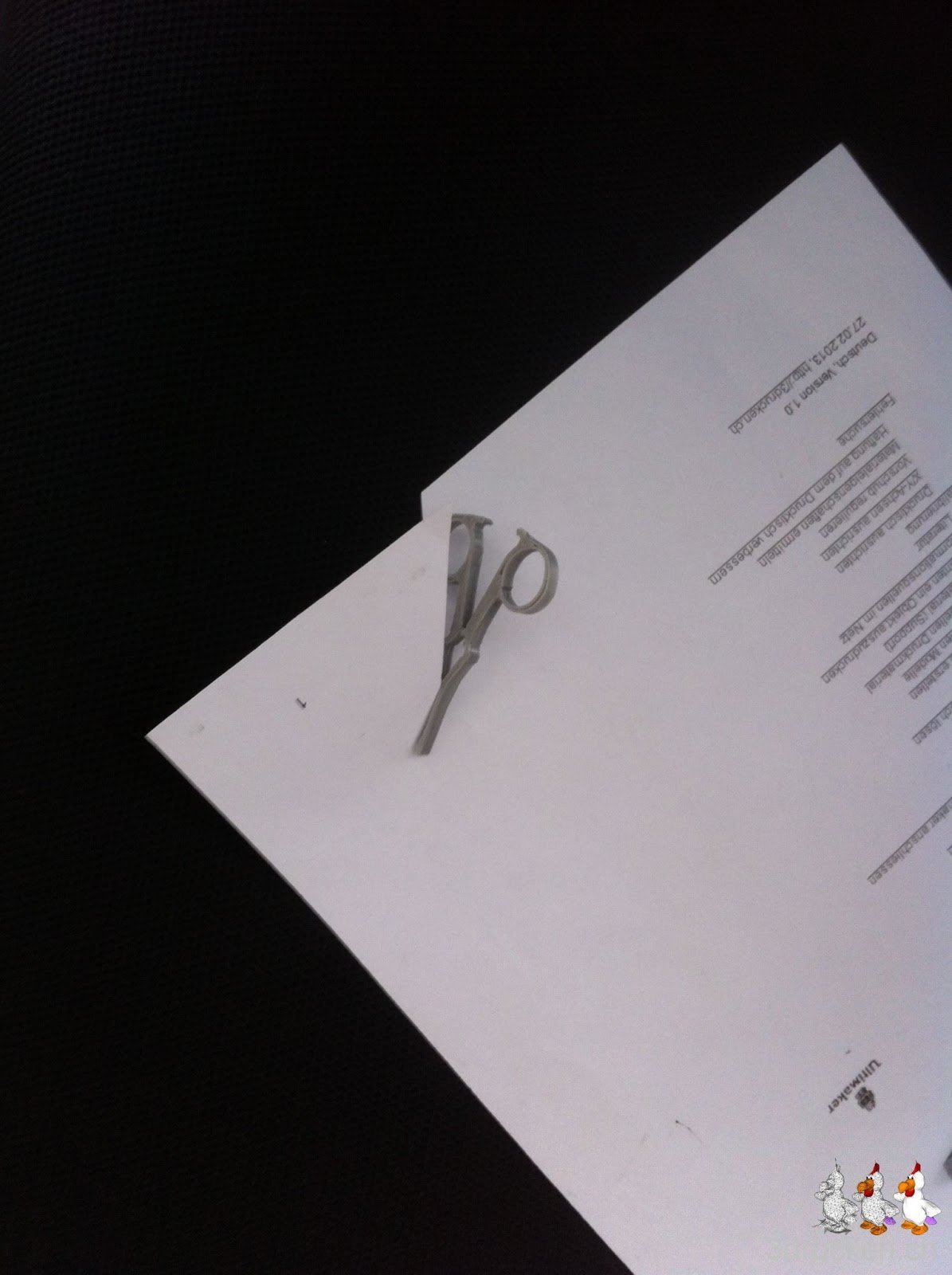 Wir vermissten irgendwie das Geräusch vom 3D-Drucker. Kurzerhand druckten wir daher eine Schere, heruntergeladen von Thingiverse. Ob sie funktionieren wird? Und wenn ja wie gut?