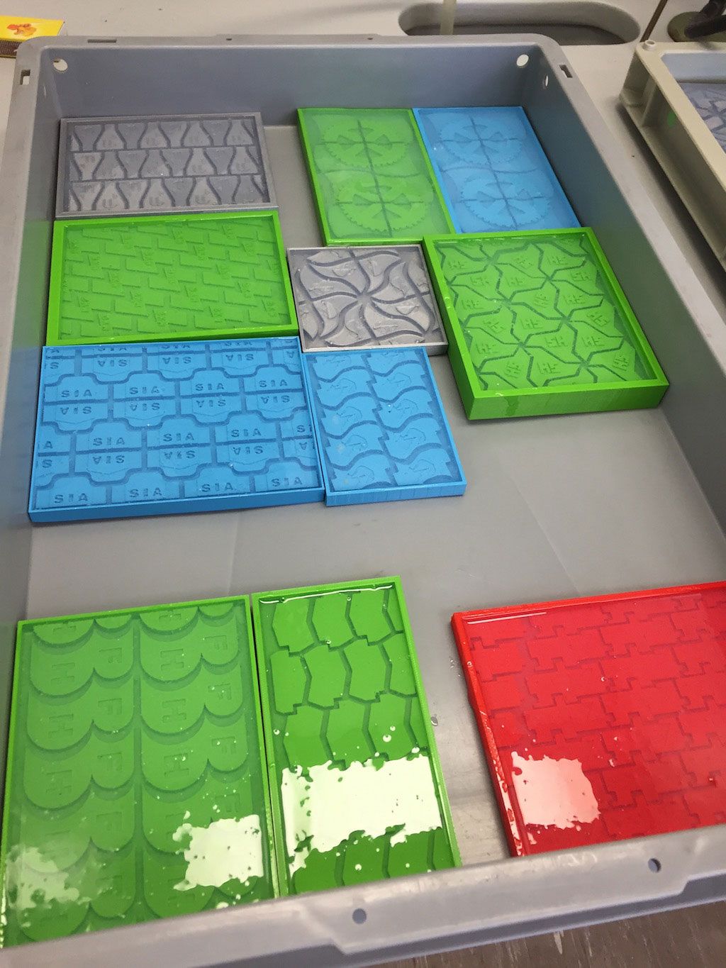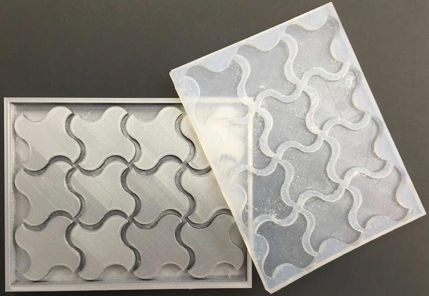 In der dritten Doppellektion wurden die Parkettsteine als Einzelstück am 3D-Drucker ausgedruckt und parallel dazu die Giessformen in Tinkercad mit Hilfe der bereits konstruierten Parkettsteine erstellt. Die ausgedruckten Parkettsteine ermöglichten dabei die Verfeinerung und Verbesserung der Konstruktion.