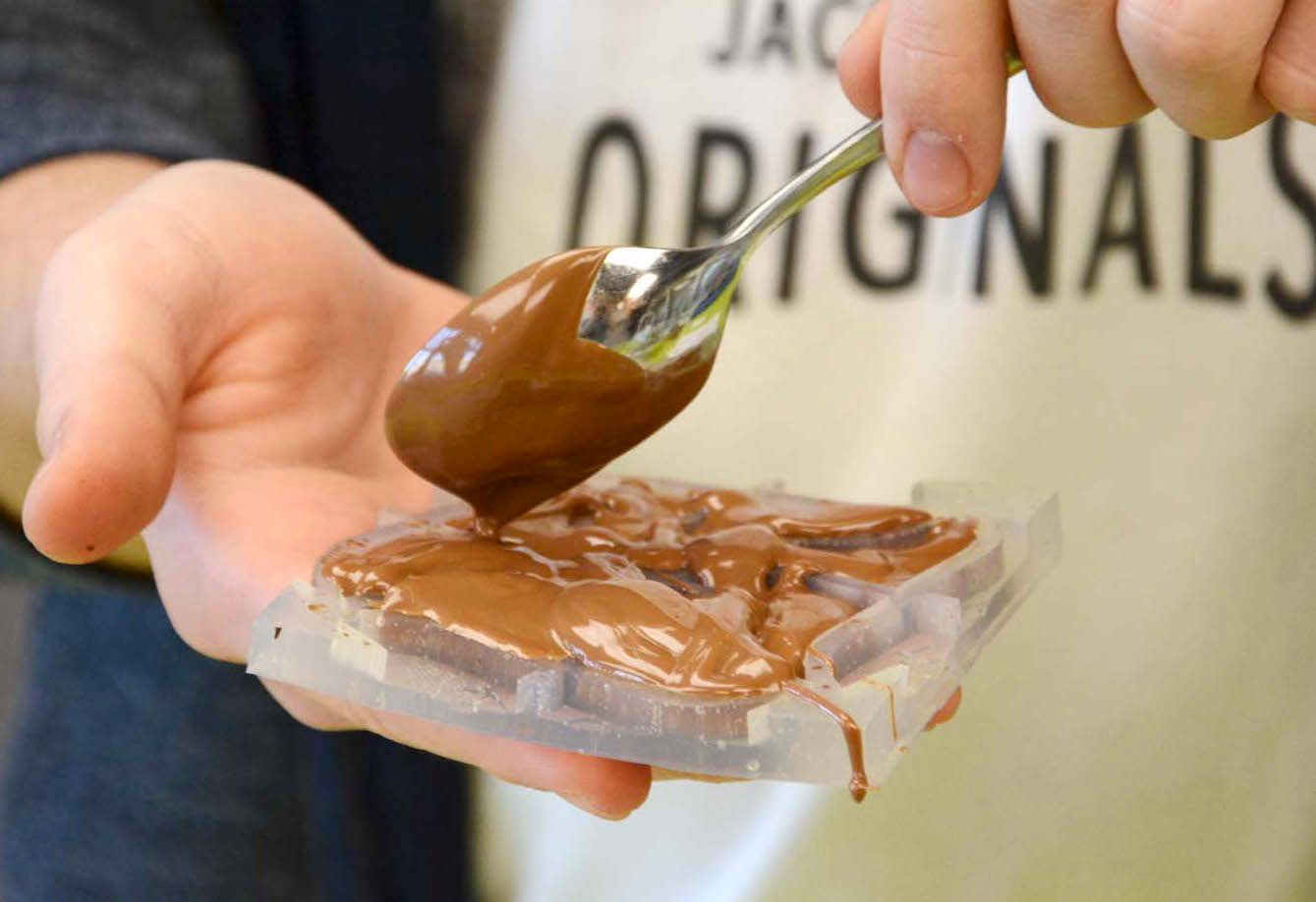 Im letzten Arbeitsschritt wurde die Schokoladenmasse in die Formen eingefüllt und die fertigen Schokoladenstücke mit Genuss verzehrt und verschenkt.