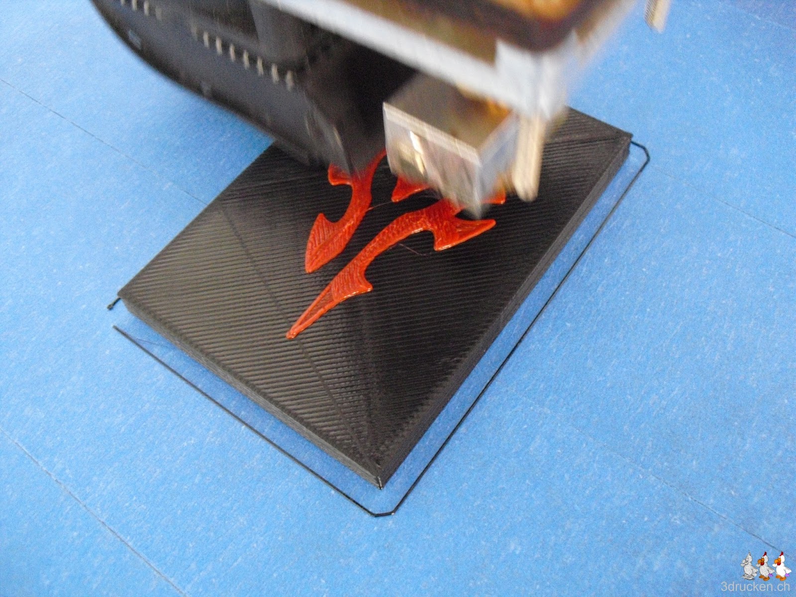 Beim ersten Versuch mit dem Plugin etwas zu drucken endete es in einem Desaster wie auch dem Ende des letzten Beitrags zu entnehmen ist. Der Fehler war, das wir die Variablen zum Debuggen in der Datei vergassen weshalb die GCode Datei nicht planmässig editiert wurde.