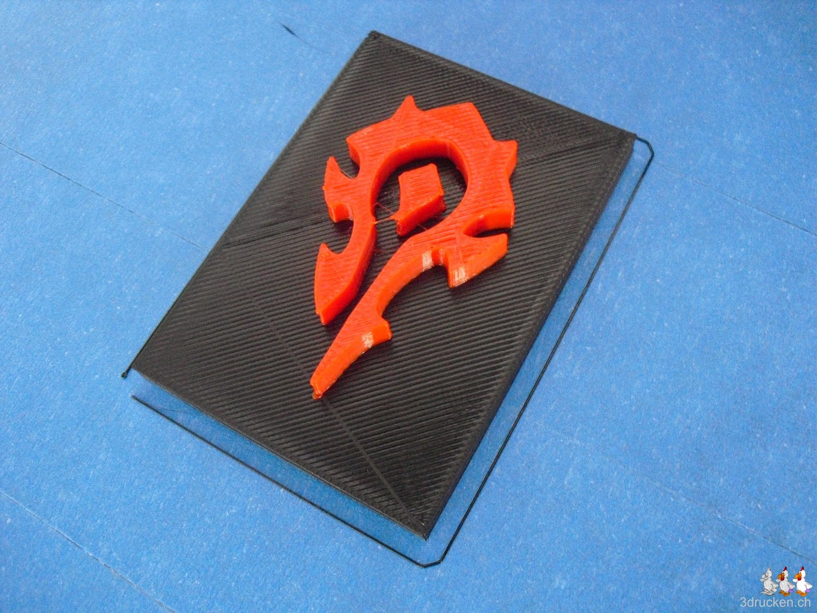 Beim dritten Versuch hat es nun doch noch geklappt. Nach dem wir das Plugin angepasst haben damit an der Home Position nichts mehr verändert wird hat es ohne Probleme geklappt. Die erste Schicht hat sich leicht mit dem ersten Objekt vermischt, wodurch sie etwas dunkler ist. Dadurch hält das zweite Objekt aber auch gut auf dem ersten. Mit dem Ergebnis sind wir voll und ganz zufrieden. Das selbst erstellte Plugin Printonobject hat seinen Zweck erfüllt und uns auf ein Objekt drucken lassen.