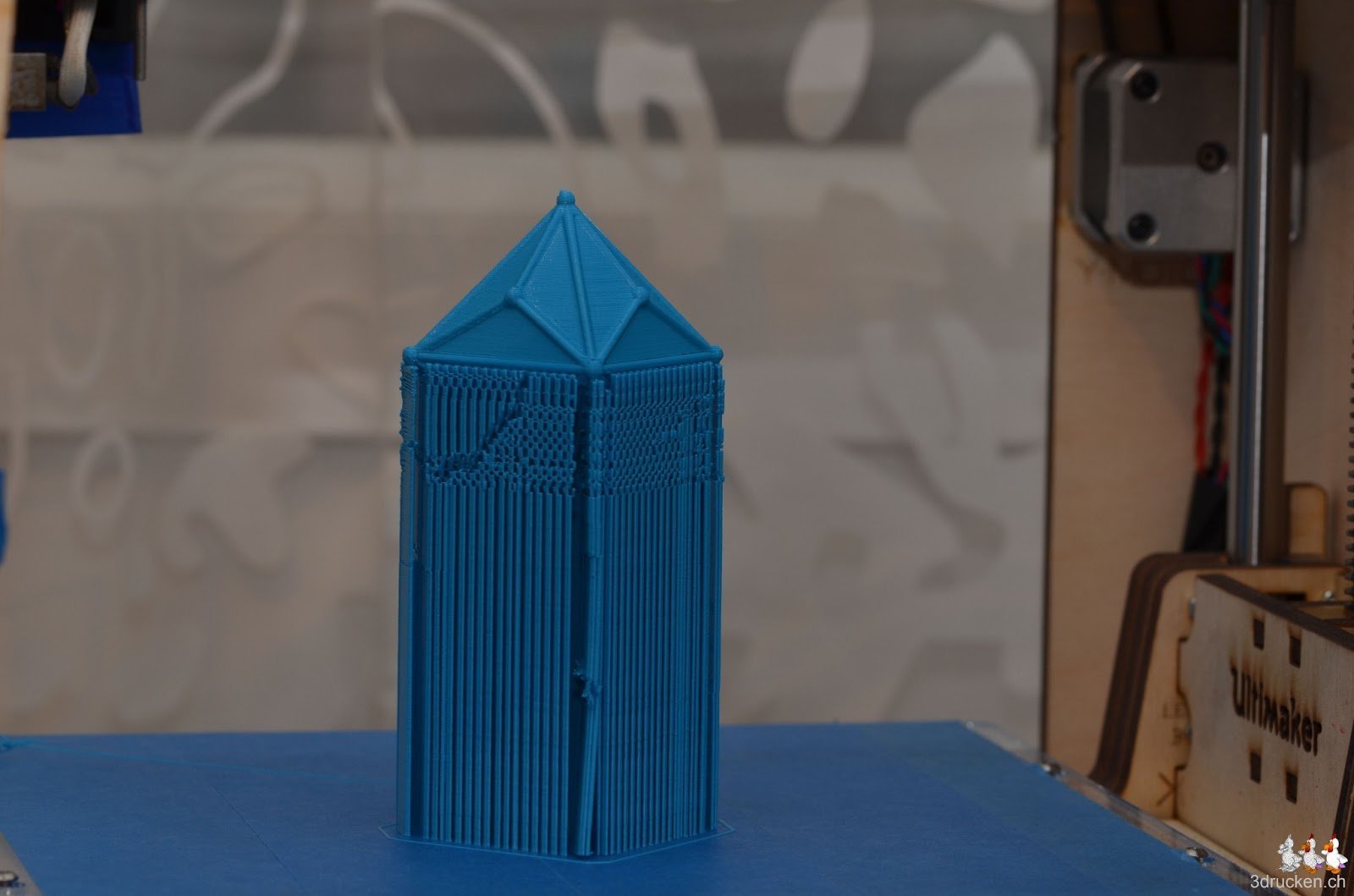 Heute Morgen auf dem Drucktisch fertig: Das Triakisoktaeder, dessen Oberfläche aus 24 gleichschenkligen Dreiecken sehr schön gelungen ist. Dies besonders deswegen, da die Winkel von der Senkrechten unten am Stamm 45° sind, was ein Drucken ohne Support ermöglicht hätte. Wir haben trotzdem mit Support gedruckt, damit die feinen Begrenzungslinien und Punkte gelingen. Druckzeit 7 h 35 min.