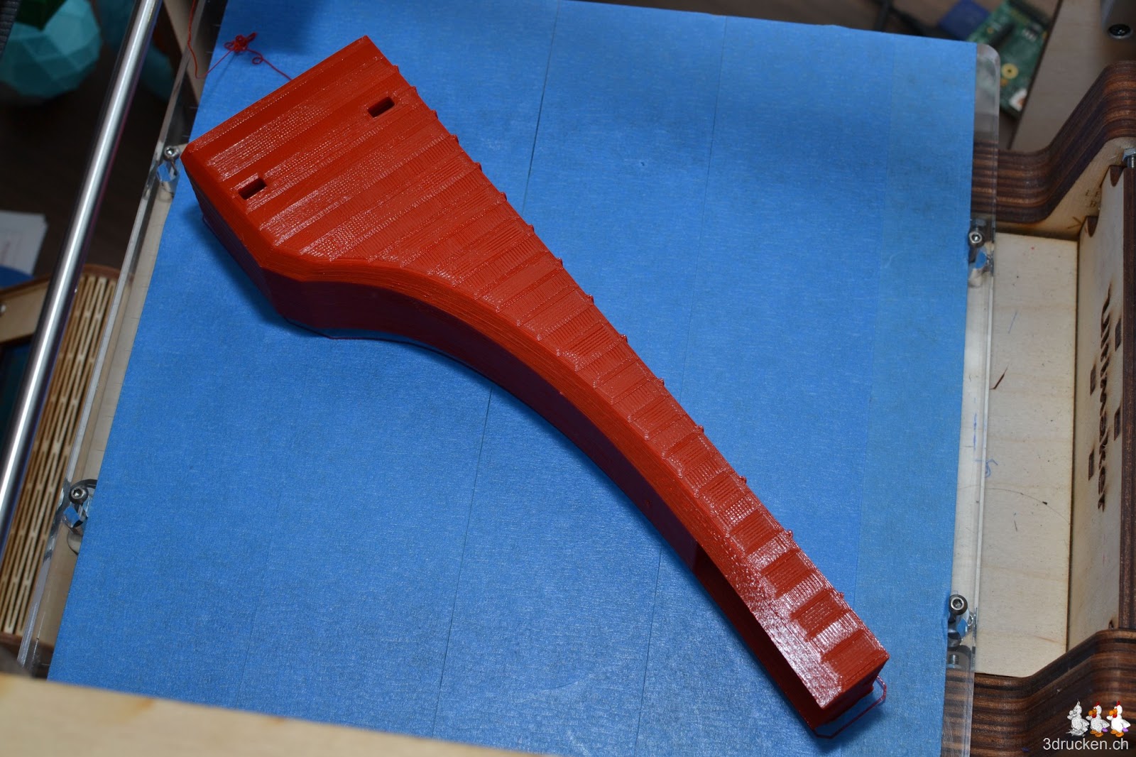 Unsere erste Ukulele ist schon länger nicht mehr einsatzfähig, sie war auch nicht sehr solid gebaut, und noch auf dem BfB 3DTouch ausgedruckt. Nun haben wir mit dem Ultimaker einen zweiten Versuch in grösserer Ausführung gewagt. Zunächst hatten wir versucht, mit dem selben Modell zu arbeiten.