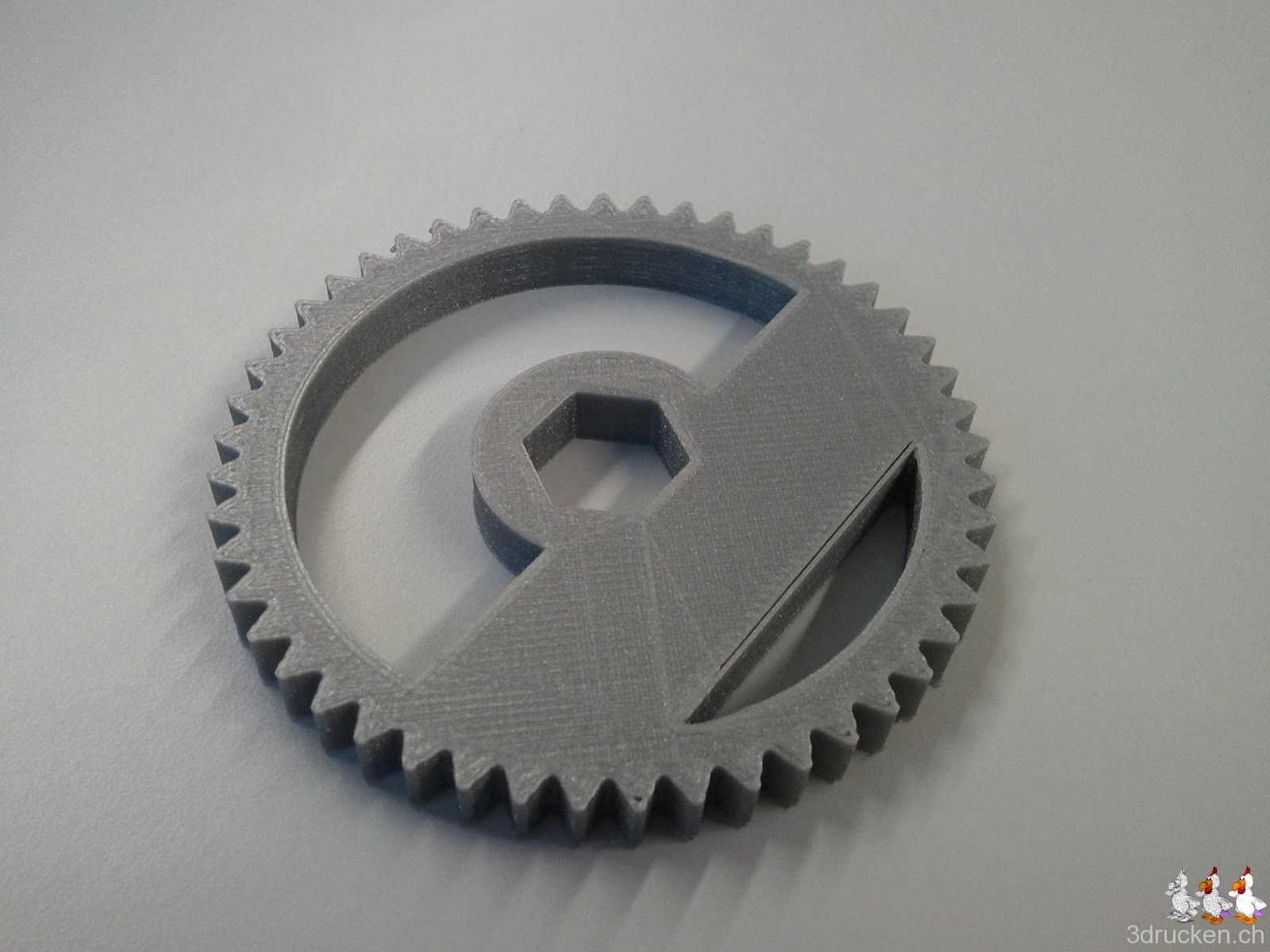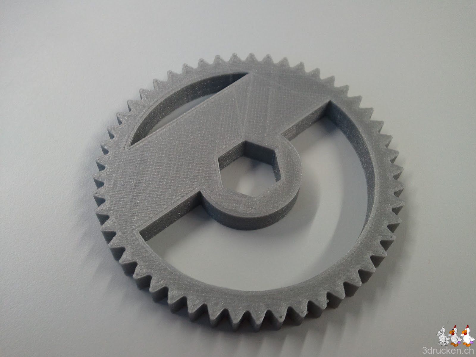 In beeindruckender Druckqualität hat unser Ultimaker über das Wochenende ungestört ein Ersatzrad für den eigenen Extruder gedruckt. Geslicet mit Cura, 0.1 mm-Schichten, 25 % Füllung, 230° C Ultimaker-PLA.
