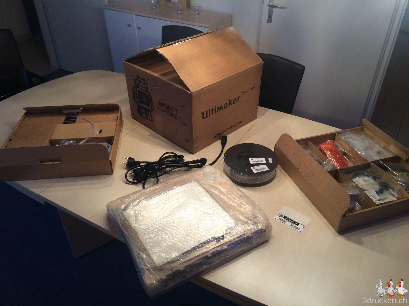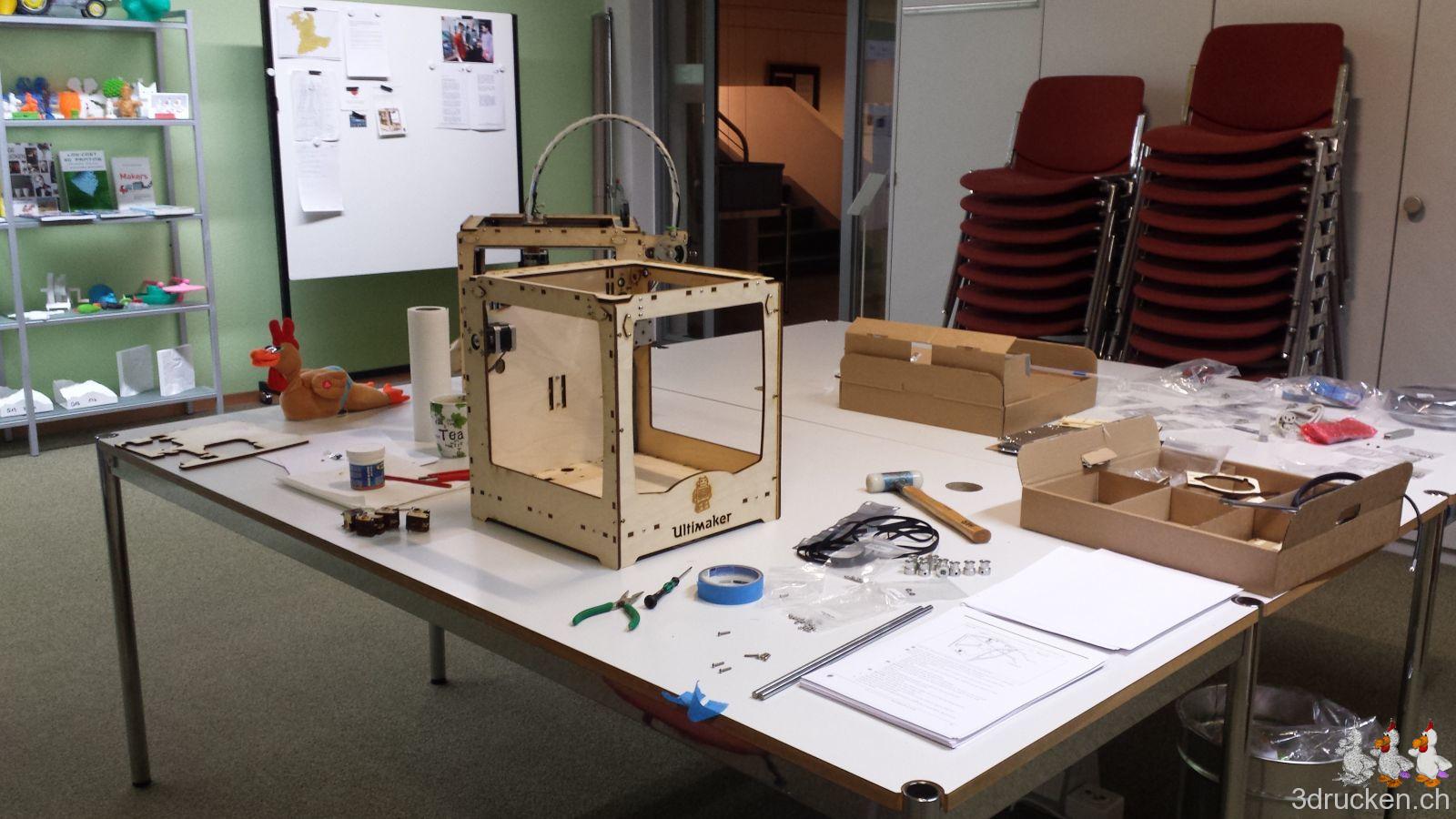 Wir haben es endlich geschafft, den von uns für die Schulen empfohlenen 3D-Drucker Ultimaker Original+ selber zusammen zu bauen. Empfohlen haben wir ihn trotzdem zuvor schon, da wir ihn schon gesehen hatten, und er im Wesentlichen von der Bedienung und vom Aufbau her wie der Ultimaker Original ist.