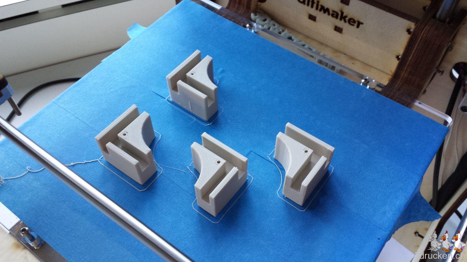 Die Montage kann in 1-2 Tagen absolviert werden, die Anleitung ist leicht verständlich, wenn auch nur in Englisch. Beim täglichen Handling ist etwas gewöhnungsbedürftig, dass der Tisch oft durch das Eigengewicht runter fährt, wenn der Z-Motor nicht blockiert ist. Dafür ist der Tisch aus Metall und Glas stabiler und wir können uns das Kleben von blauem Klebeband in Zukunft sparen. Der Frust von verzogenen Teilen und hochgezogenen Ecken dürfte damit auch der Vergangenheit angehören. Der nächste Schritt ist nun, unsere vier Ultimaker Original mit dem Heated Bed Upgrade Kit umzurüsten.
