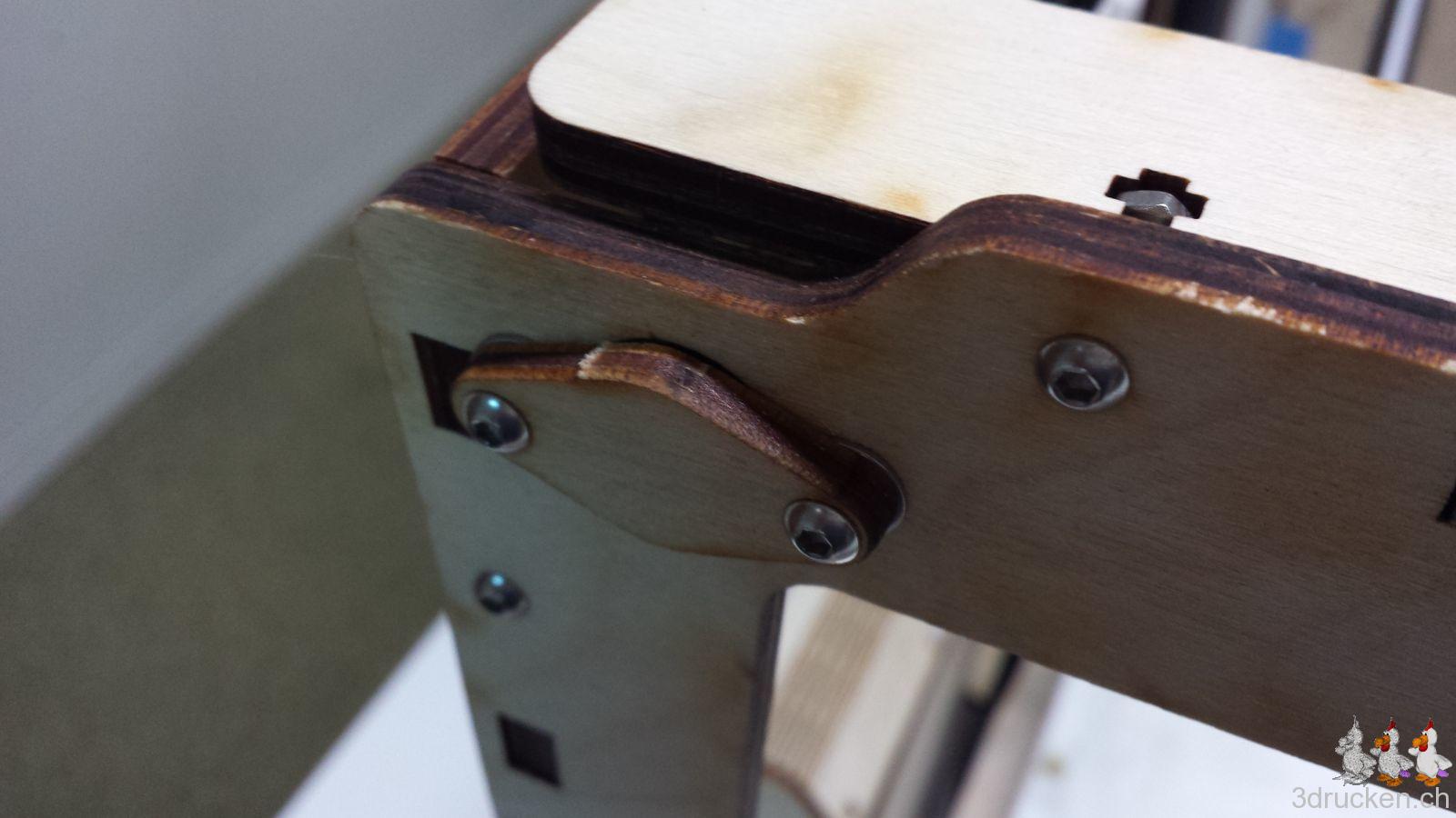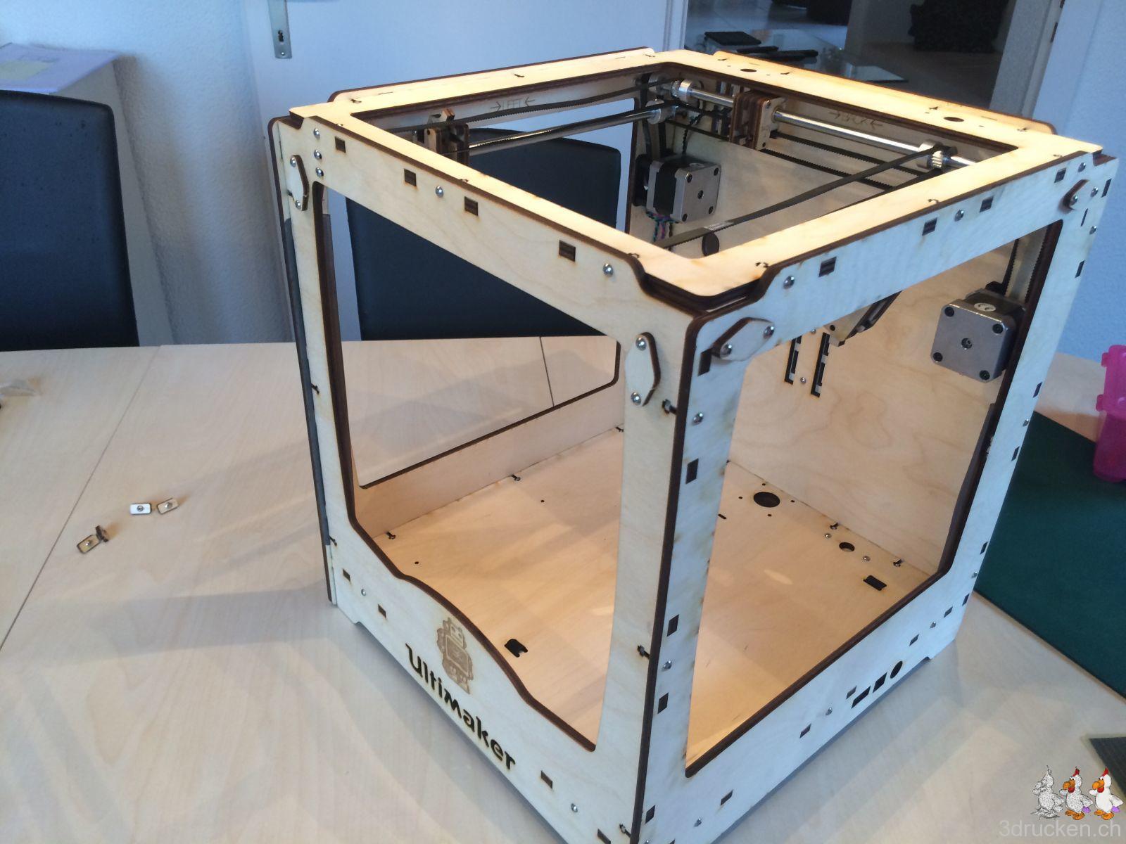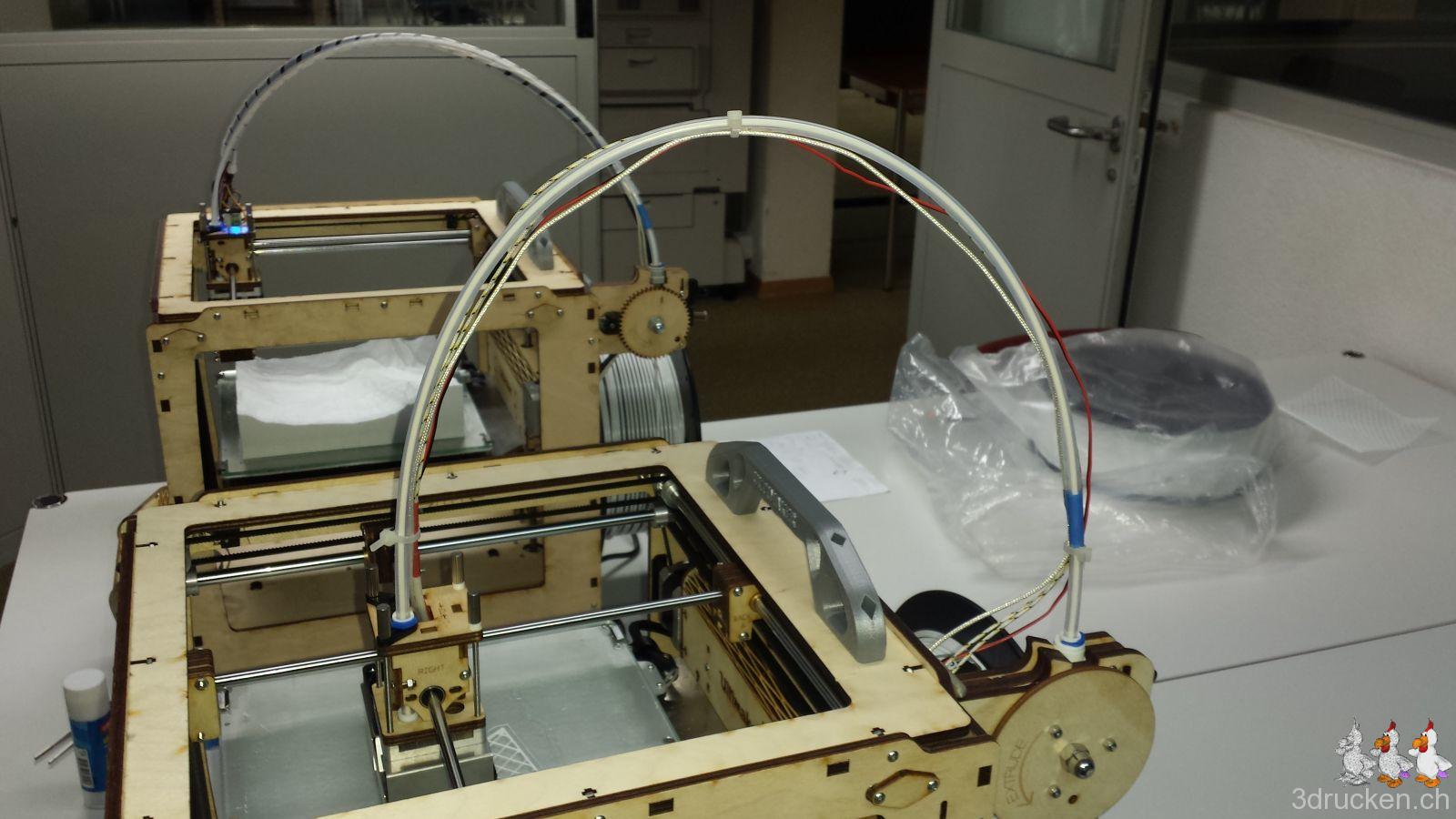 Profitiert haben wir dabei vom 3D-Drucker Baukurs bei imedias, wo wir auch schon selber mitschrauben durften und von dem Support für unsere Kollegin Cornelia, die sich infiziert vom 3D-Druck-Virus, gleich selber einen Ultimaker Original+ angeschafft hat. Unterstützt wurden wir bei diesem Bauvorhaben von Stefan vom Hausdienst, an der Stelle herzlichen Dank fürs Helfen.
