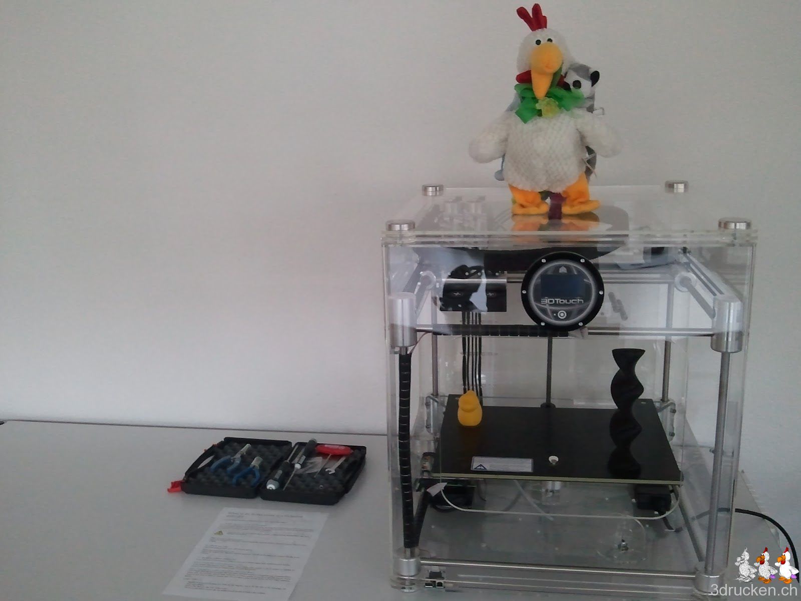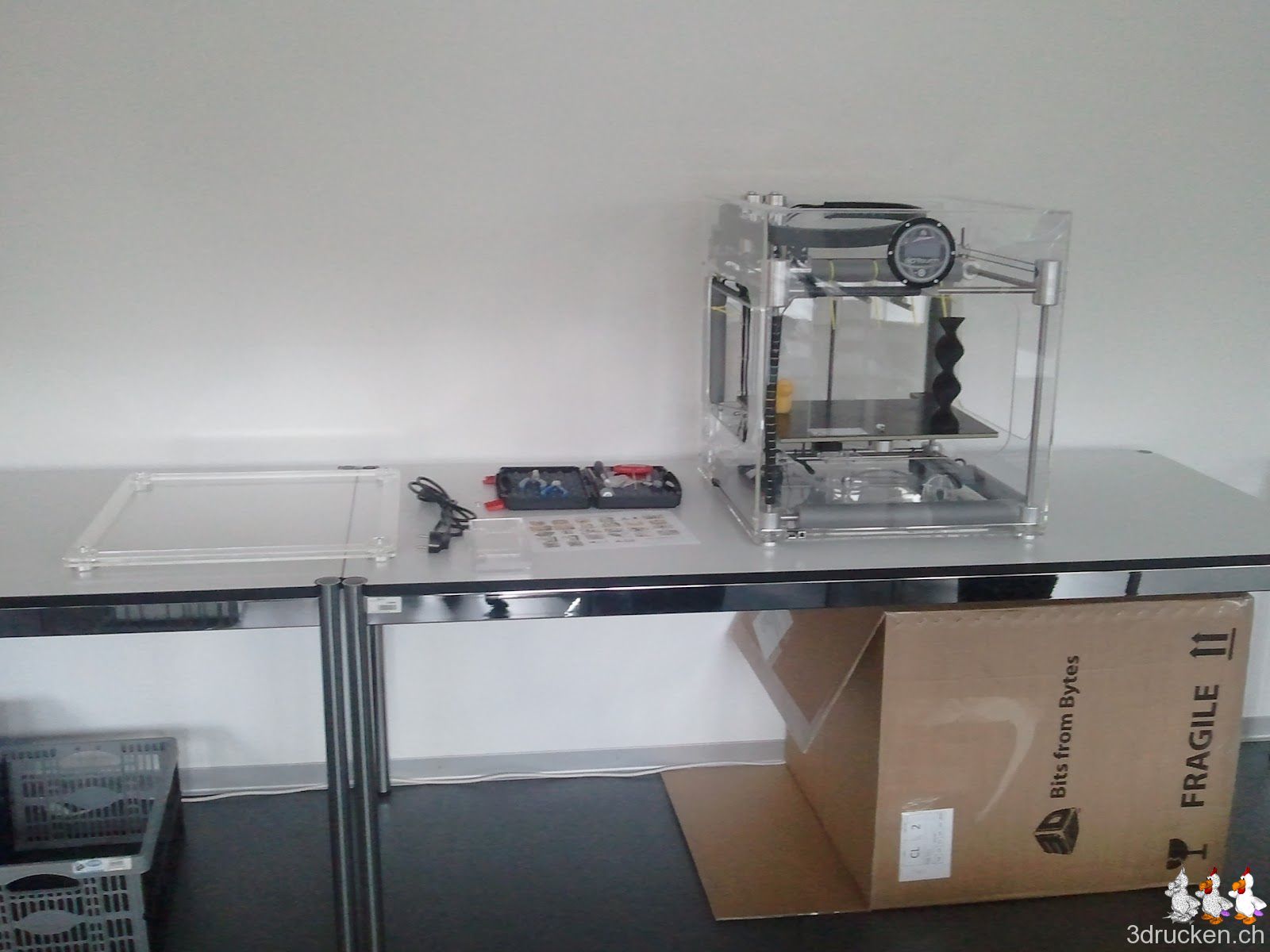 Da steht er nun, streng nach Anleitung ausgepackt, aber noch nicht eingeschaltet, dazu reicht die Zeit heute nicht mehr. Erst mal vorbildlich das Set Up and Operations Manual lesen, und dann bei nächster Gelegenheit den Drucker in Betrieb nehmen.