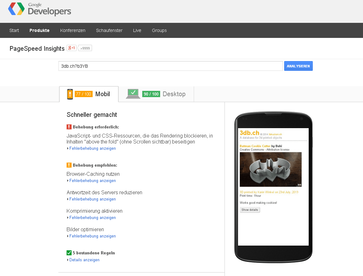 Es war uns schon lange ein Anliegen, eine anständige Mobilansicht von 3db.ch zu liefern. Nun scheint uns das zumindest unserer Testgeräte nach zu urteilen gelungen zu sein. Sehr hilfreich bei der Anpassung der CSS-Definitionen in der antiscreen.css Datei, wie auch ganz minim im PHP-Code, war das Tool PageSpeed Insights> von Google. Da könnt ihr nun selber beurteilen, wie jede beliebige Seite abschneidet. Man kann praktisch zwischen mobiler Ansicht und Desktop hin und her wechseln und bekommt Tipps zur Verbesserung.Wie so oft gäbe es noch mehr Optimierungspotential, wir finden aber erst mal es reicht so.