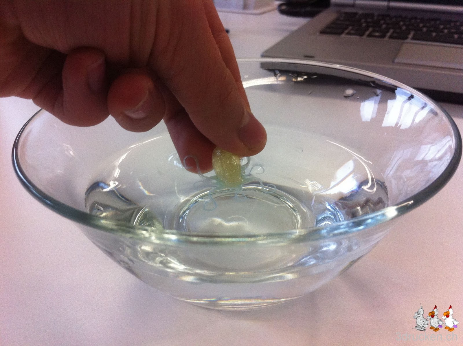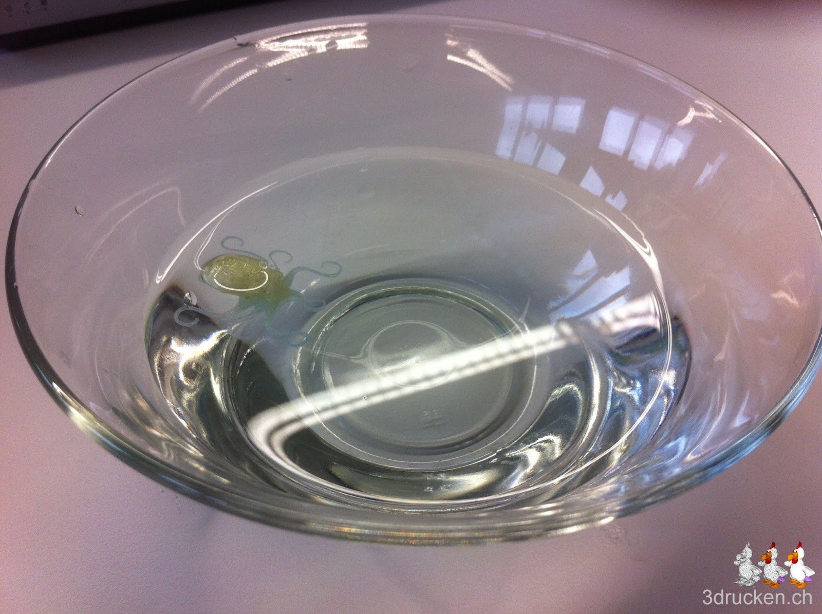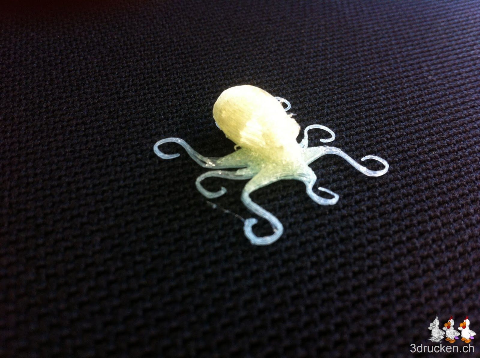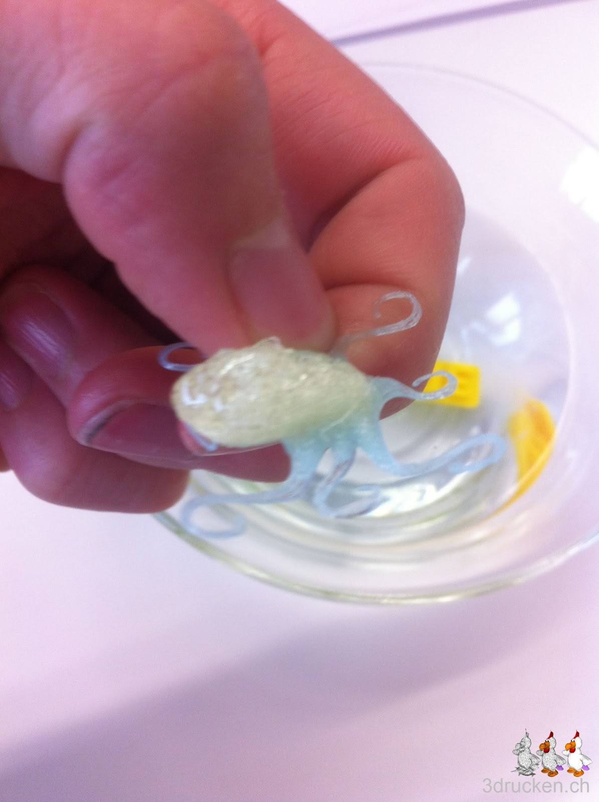 Nach dem Druck legten wir den Octopus in warmes Wasser ein. Nach 3 Stunden hatte sich das scheinbar wasserlösliche Material noch nicht aufgelöst. Das Objekt war nur weich und klebrig. Wer weiss vielleicht braucht das noch länger…