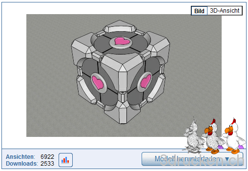 Der Testdruck von heute ist der Weighted Companion Cube, ein Wunsch von Thomas Schär. Der Würfel liegt als SketchUp-Modell vor.
