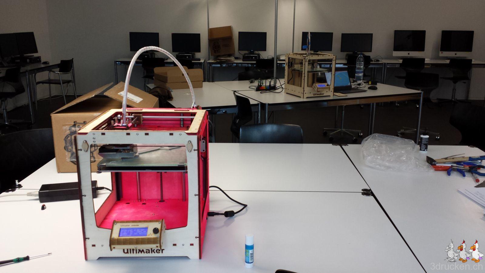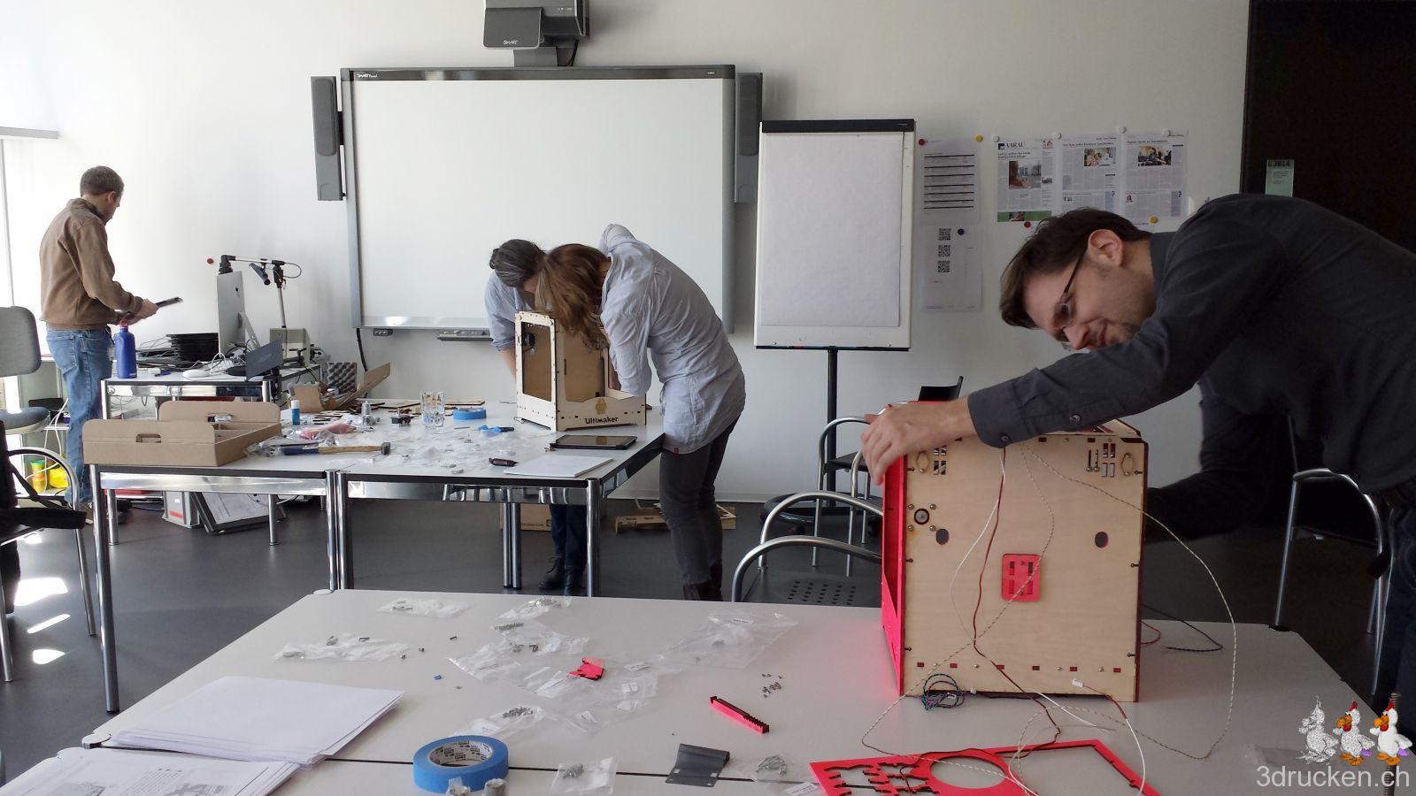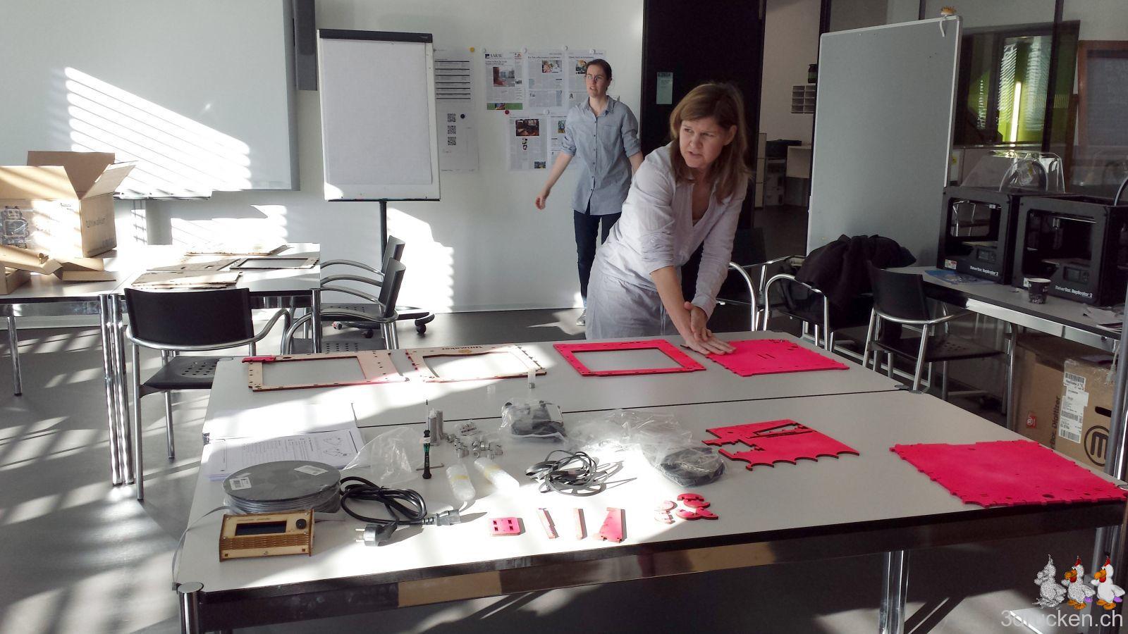 Ende Februar war es dann endlich soweit, unser Angebot wurde bewilligt, und dem gemeinsamen Kurs zum Bau von zwei Ultimaker Original+ Druckern stand nichts mehr im Weg. Veranschlagt waren dafür drei Tage bei imedias vor Ort in Brugg.