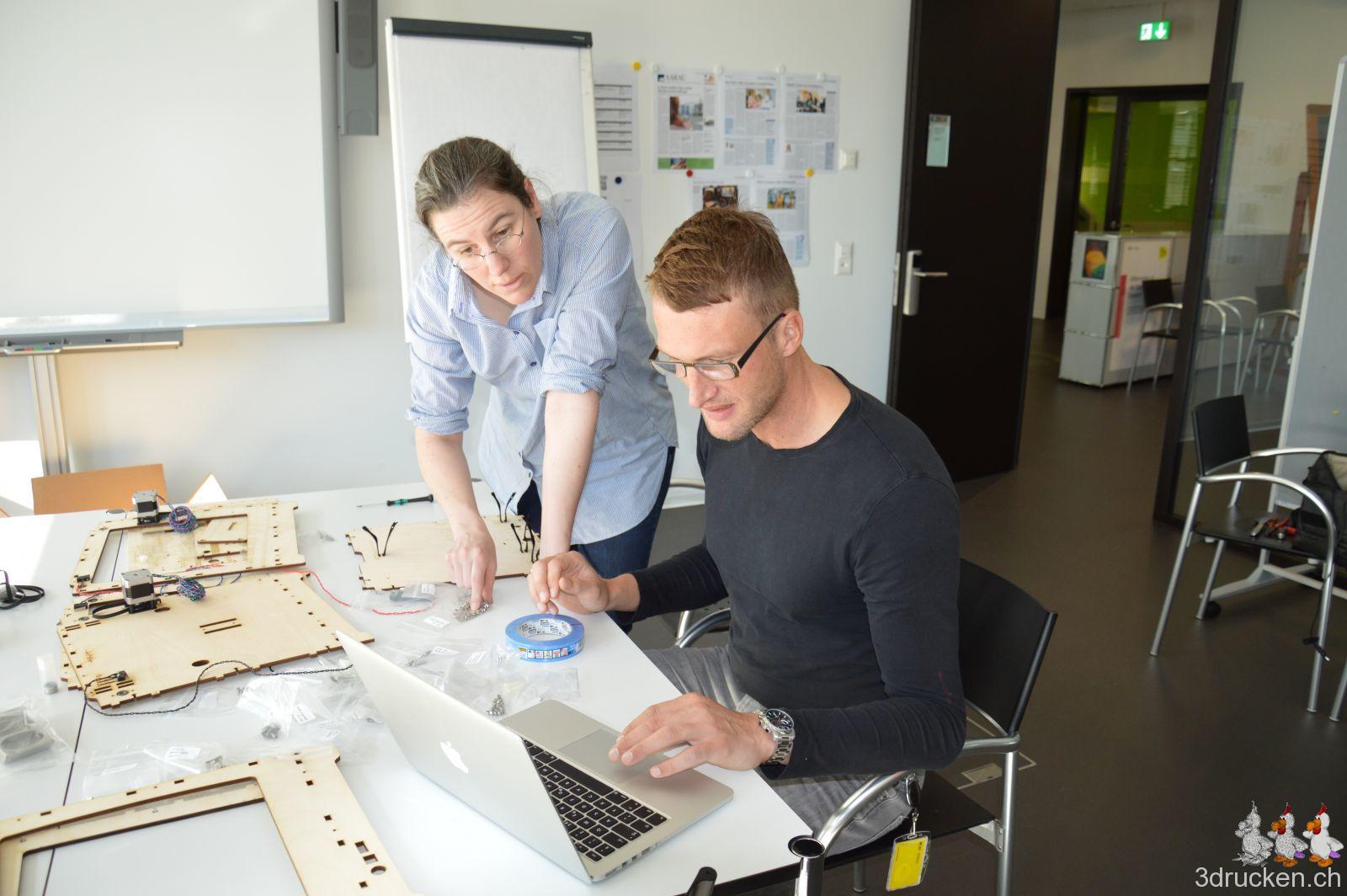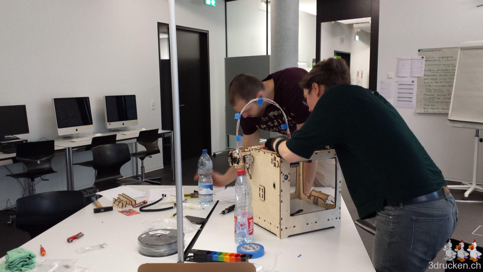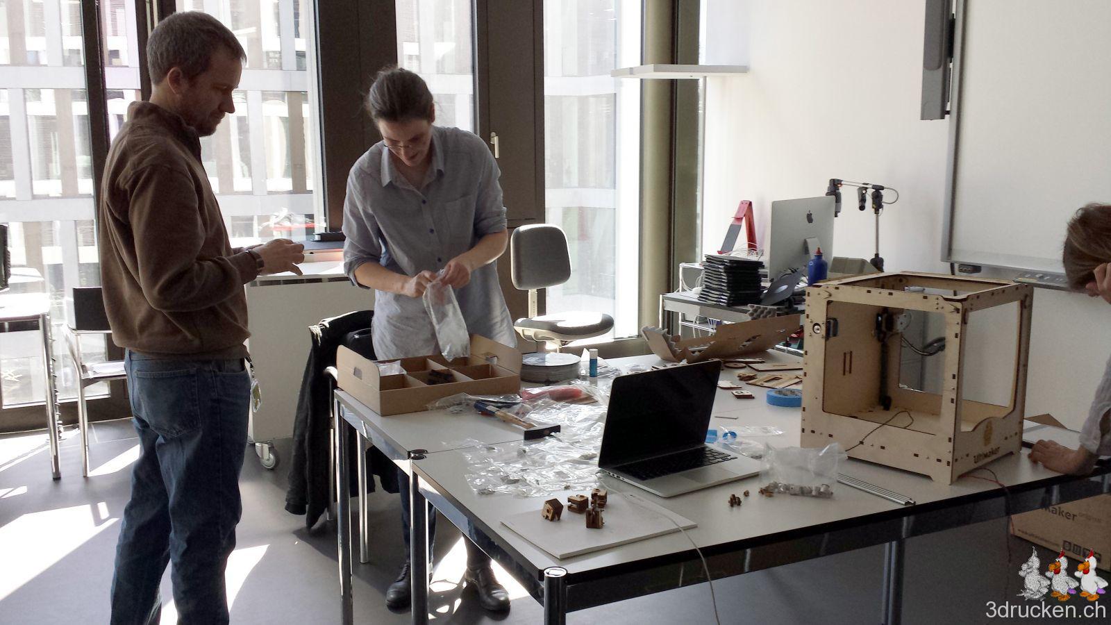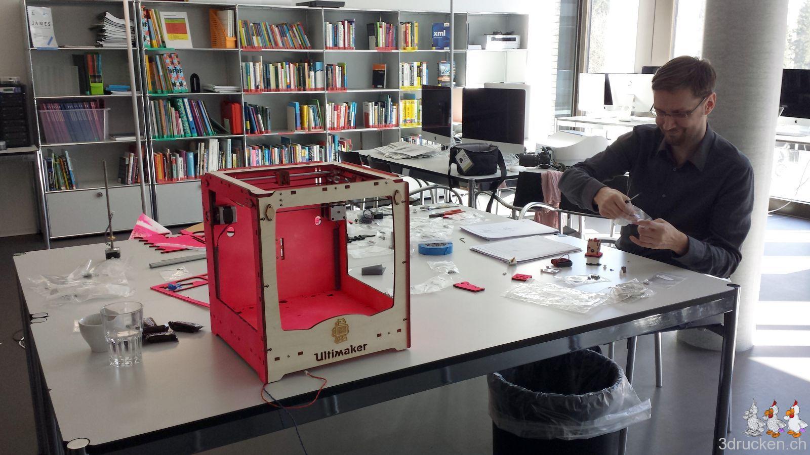 Ende Februar war es dann endlich soweit, unser Angebot wurde bewilligt, und dem gemeinsamen Kurs zum Bau von zwei Ultimaker Original+ Druckern stand nichts mehr im Weg. Veranschlagt waren dafür drei Tage bei imedias vor Ort in Brugg.