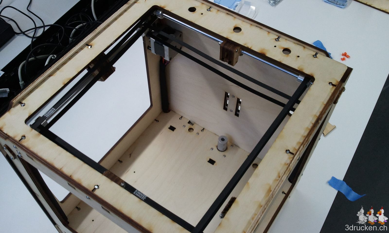 Von Vorteil wäre es übrigens, wenn bereits in diesem Schritt die Riemenräder (Pulleys) zueinander ausgerichtet werden, damit später die Justierung der Achsen leichter gemacht werden kann. Die Ausrichtung kann man beim Einhängen des Riemens gut vornehmen.
