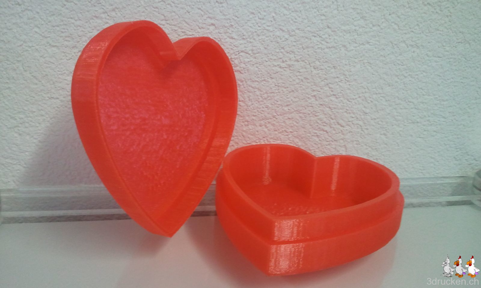 Mit dem 3D-Drucker lassen sich also nicht nur Geschenke, sondern auch die Verpackungen für die Geschenke herstellen. Allerdings ist das Herz so gut gelungen, dass man die Verpackung auch als Geschenk anschauen kann.